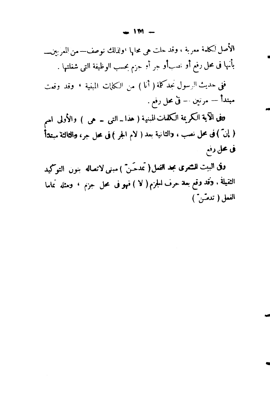ففي حديث الرسول نجد كلمة "أنا" من الكلمات المبنية، وقد وقعت مبتدأ -مرتين- في محل رفع.