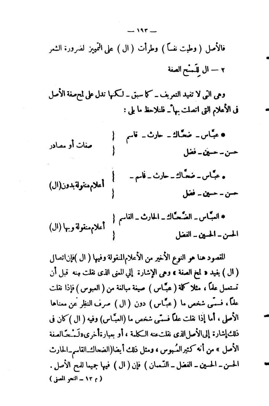 المقصود هنا هو النوع الأخير من الأعلام المنقولة وفيها "أل" فإن اتصال "أل" يفيد "لمح الصفة" وهي الإشارة إلى المعنى الذي نقلت منه قبل أن تستعمل علمًا، مثلا كلمة "عبَّاس" صيغة مبالغة من "العبوس" فإذا نقلت علمًا، فسمي شخص ما "عبَّاس" دون "أل" صرف النظر عن معناها الأصلي، أما إذا نقلت علمًا فسمّي شخص ما "العبَّاس" وفيه "أل" كان في ذلك إشارة إلى الأصل الذي نقلت عنه الكلمة، أو بعبارة أخرى "لَمْحًا لصفة الأصل" من أنه كثير العُبوس، ومثل ذلك أيضا "الضحاك، القاسم، الحارث، الحسن، الحسين، الفضل، النّعمان" فإن "أل" فيها جميعا للمح الأصل.