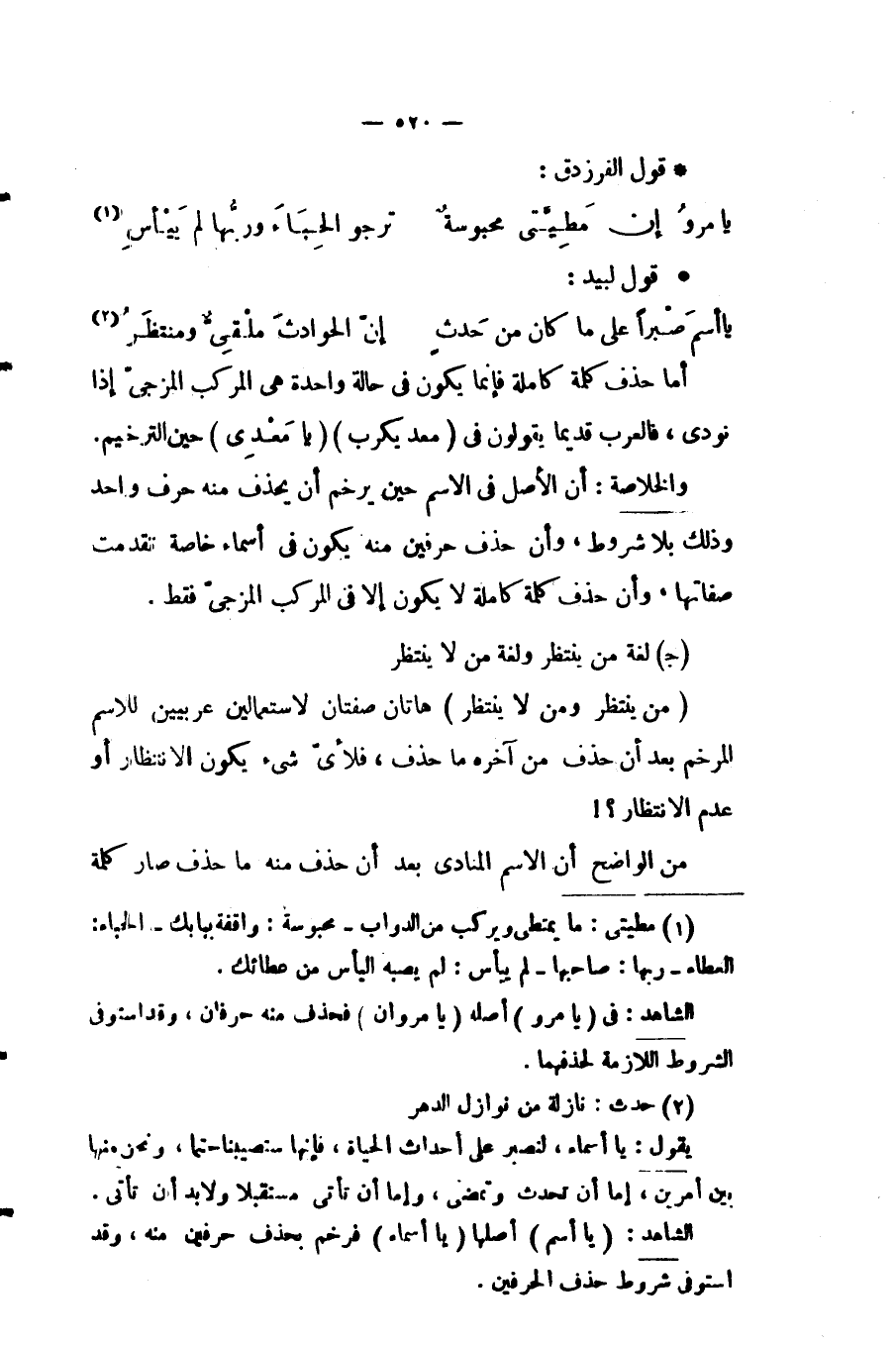 الشاهد: في "يا مرو" أصله "يا مروان" فحذف منه حرفان، وقد استوفى الشروط اللازمة لحذفهما.