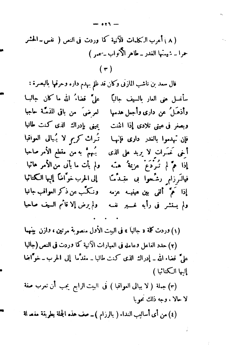 ٣- جملة "لا يبالي العواقبا" في البيت الرابع يجب أن تعرب صفة لا حالا، وجه ذلك نحويا.