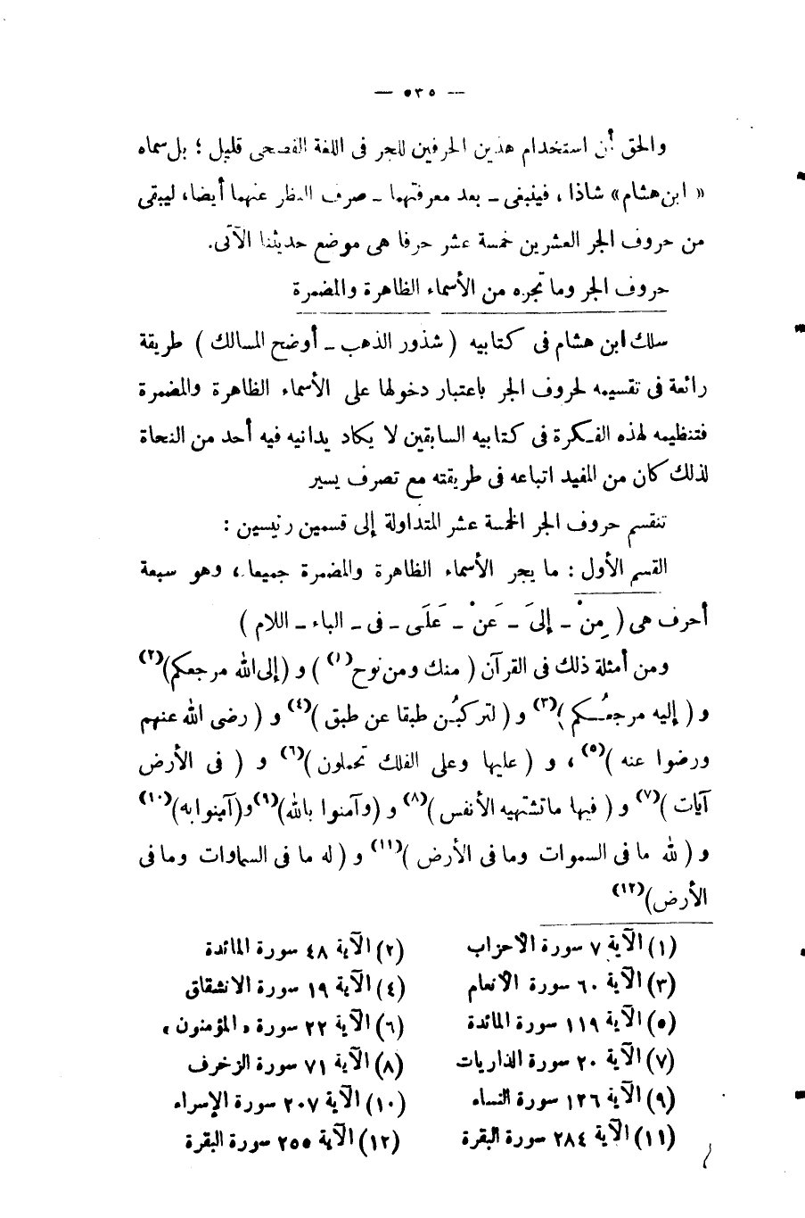 سلك ابن هشام في كتابيه "شذور الذهب، أوضح المسالك" طريقة رائعة في تقسيمه لحروف الجر باعتبار دخولها على الأسماء الظاهرة والمضمرة فتنظيمه لهذه الفكرة في كتابيه السابقين لا يكاد يدانيه فيه أحد من النحاة لذلك كان من المفيد اتباعه في طريقته مع تصرف يسير.