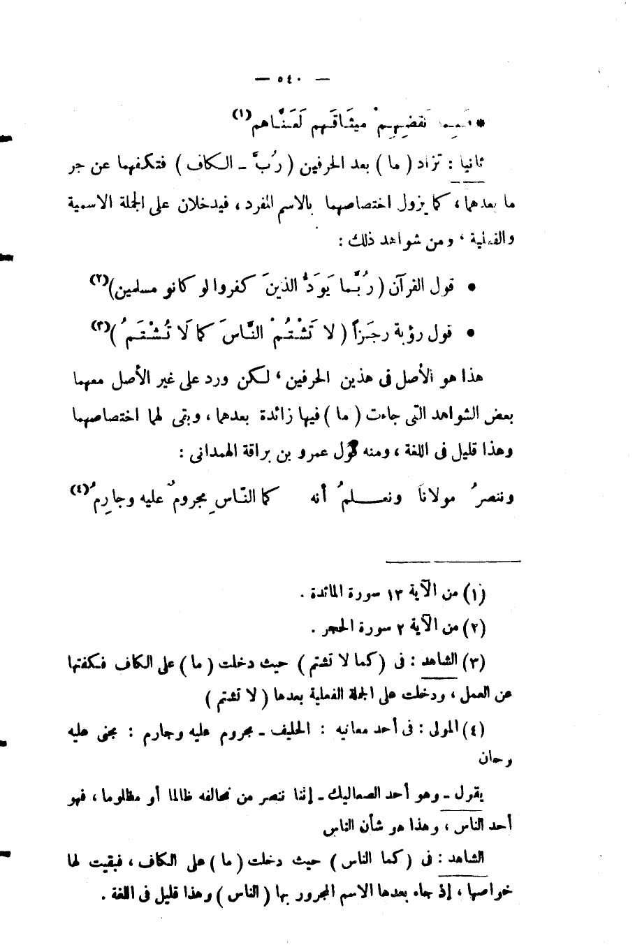 ثانيا: تزاد "ما" بعد الحرفين "رُبَّ، الكاف" فتكفهما عن جر ما بعدهما، كما يزول اختصاصهما بالاسم المفرد، فيدخلان على الجملة الاسمية والفعلية، ومن شواهد ذلك: