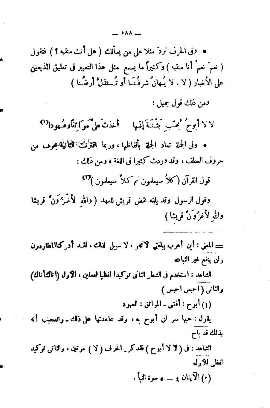 الشاهد: في "لا لا أبوح" فقد كرر الحرف "لا" مرتين، والثاني توكيد لفظي للأول.