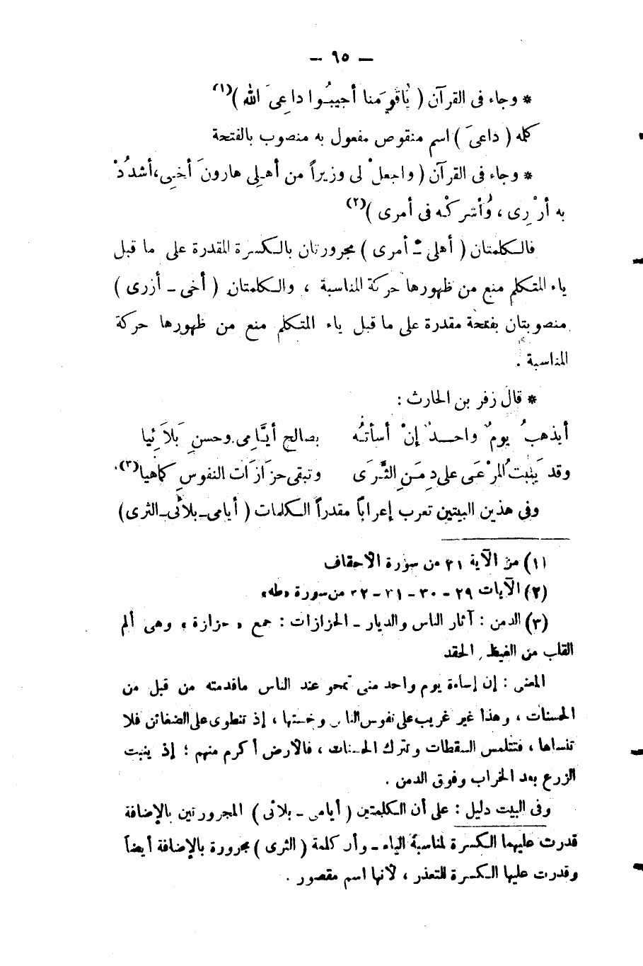 وفي البيت دليل: على أن الكلمتين "أيامي، بلائي" المجرورتين بالإضافة قدرت عليهما الكسرة لمناسبة الياء، وأن كلمة "الثرى" مجرورة بالإضافة أيضًا وقدرت عليها الكسرة للتعذر، لأنها اسم مقصور.