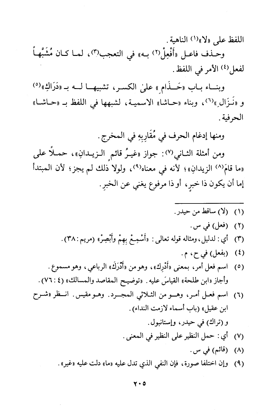 ومن أمثلة الثاني: جواز (غير قائم الزيدان) حملا على (ما قام الزيدان) لأنه في معناه ولولا ذلك لم يجز لأن المبتدأ إما أن يكون ذا خبر أو أن يكون ذا خبر أو ذا خبر أو ذا مرفوع يغني عن الخبر.