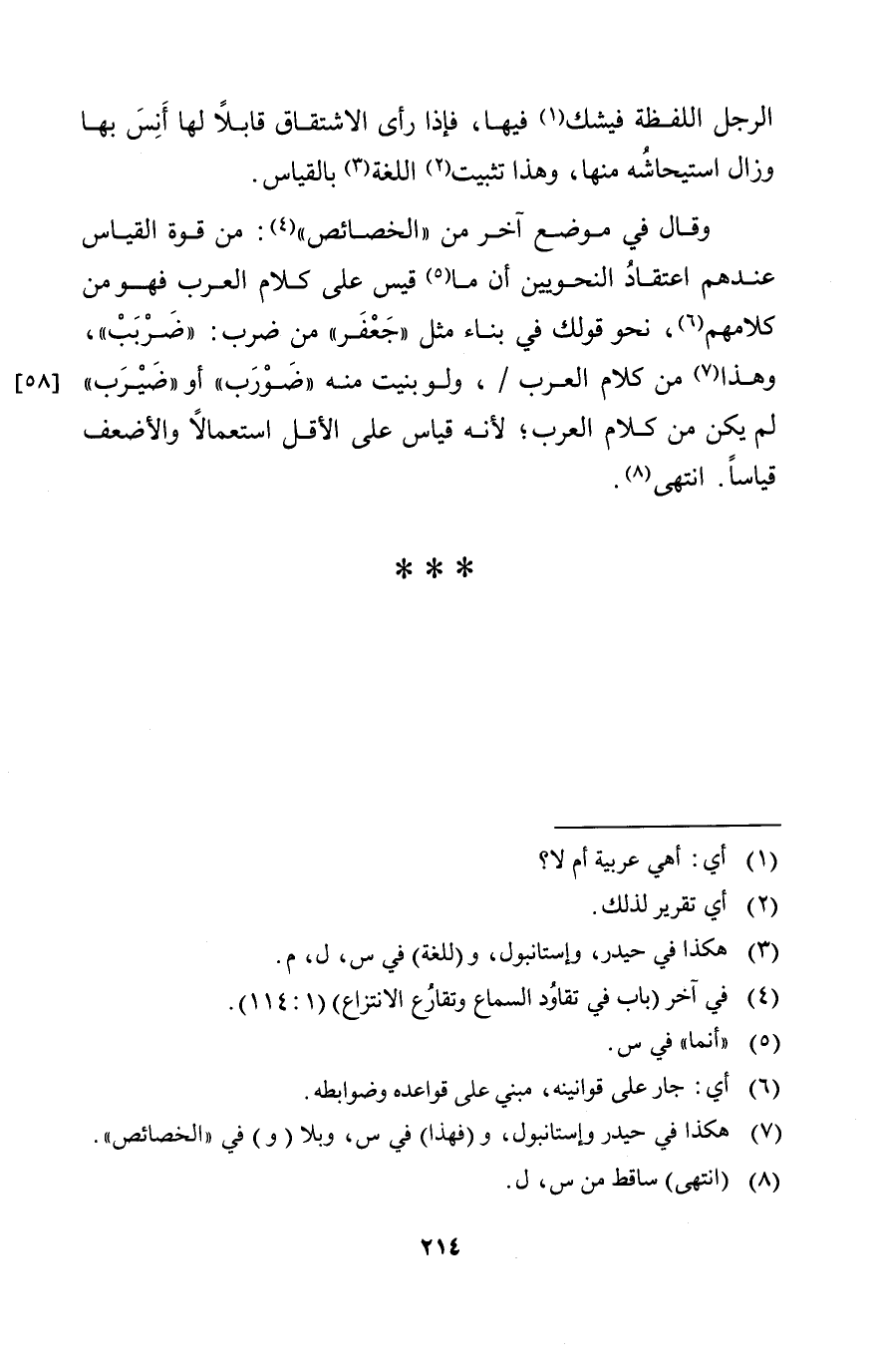 الرجل اللفظة فيشك فيها فإذا رأى الاشتقاق قابلا لها أنس بها وزال استحاشه منها وهذا تثبيت اللغة بالقياس "