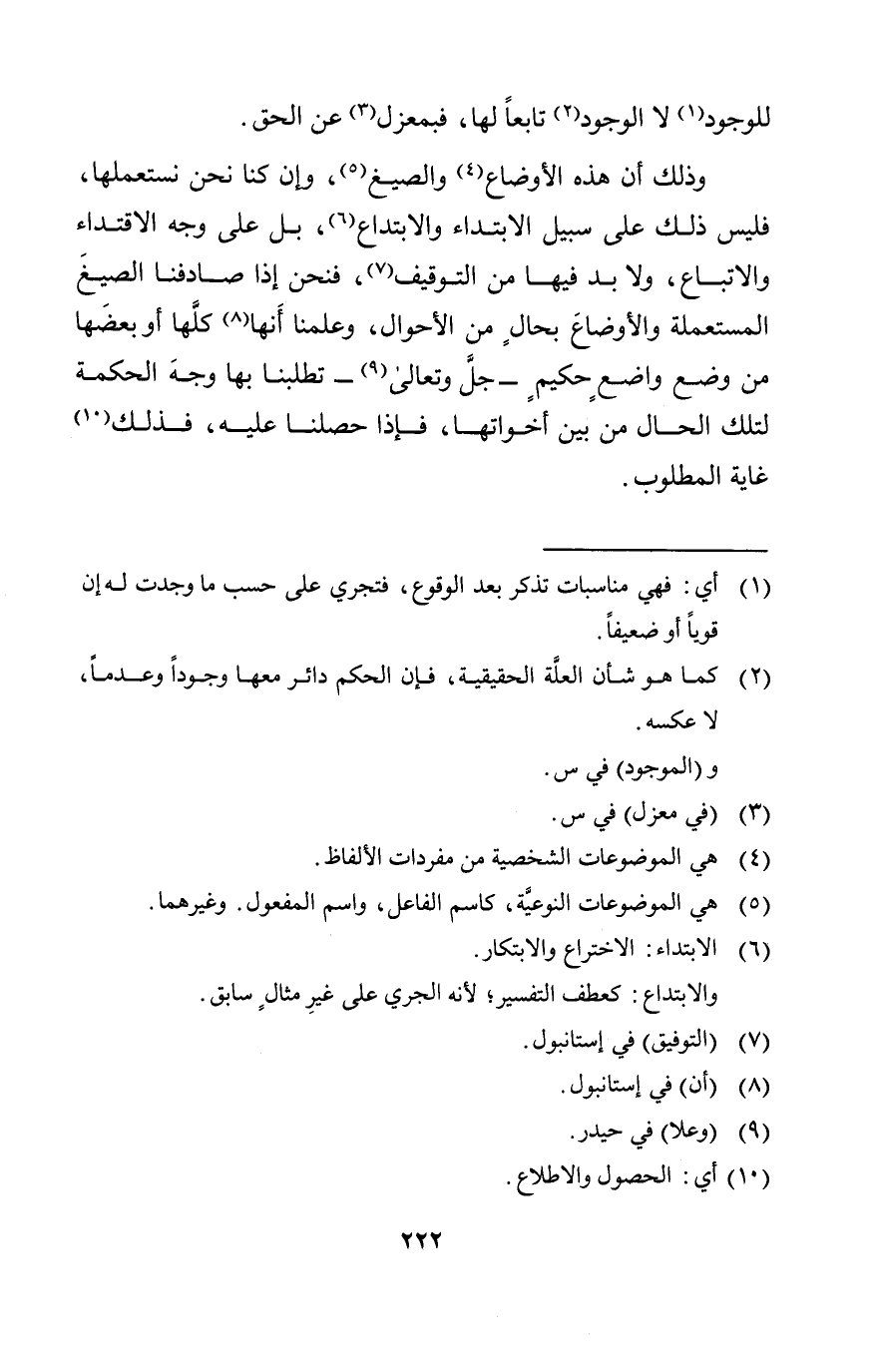 وذلك أن هذه الأوضاع والصيغ وإن كنا نستعملها فليس ذلك على سبيل الابتداء والابتداع بل على وجه الاقتداء والاتباع ولابد فيها من التوقيف فنحن إذا صادفنا الصيغ المستعملة والأوضاع بحال من الأحوال وعلمنا أنها كلها أو بعضها من وضع واضع حكيم جل وتعالى تطلبنا بها وجه الحكمة لتلك الحال من بين أخواتها فإذا حصلنا عليه فذلك غاية المطلوب "