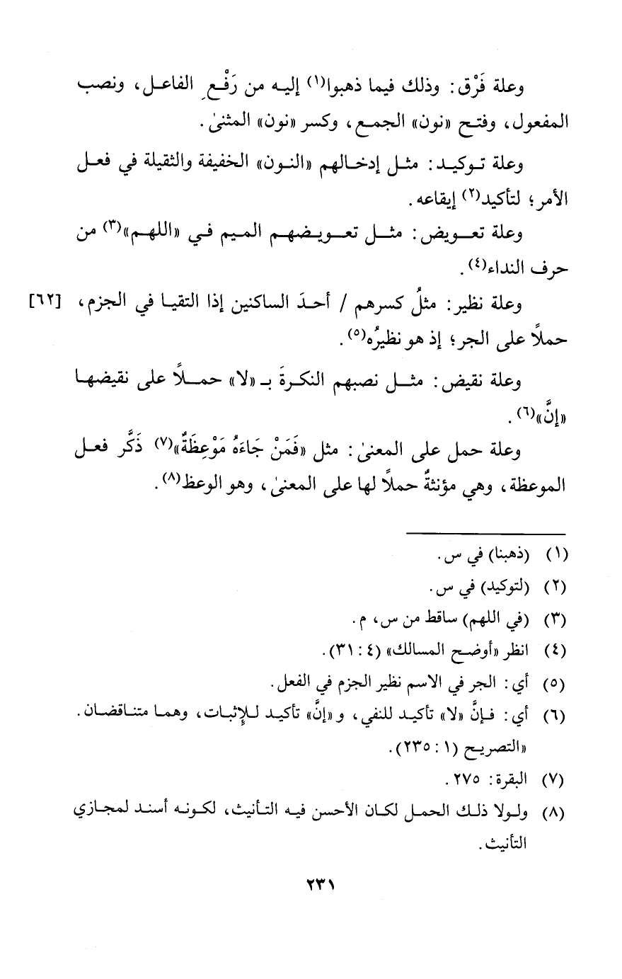 وعلة فرق وذلك فيما ذهبوا إليه من رفع الفاعل ونصب المفعول وفتح نون الجمع وكسر نون المثنى.