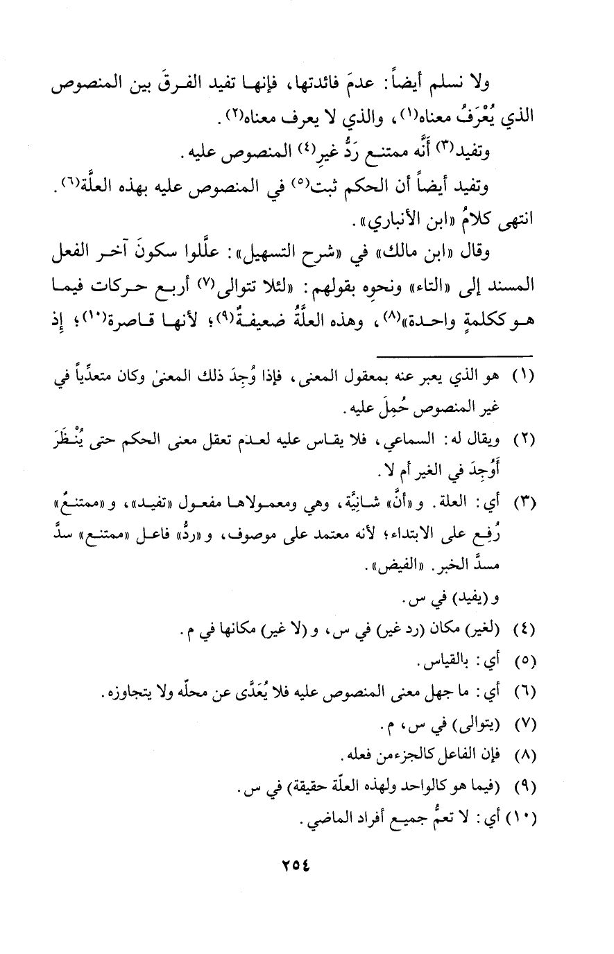 " عللوا سكون آخر الفعل المسند إلى التاء ونحوه بقولهم لئلا تتوالى أربع حركات فيما هو ككلمة واحدة وهذه العلة ضعيفة لأنها قاصرة إذ