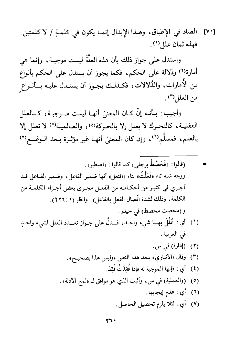 فهذه ثمان علل واستدل على على جواز ذلك بأن هذه العلة ليست موجبة وإنما هي إمارة ودلالة على الحكم بأنواع من الإمارات والدلالات فكذلك يجوز أن يستدل عليه بأ نواع من العلل