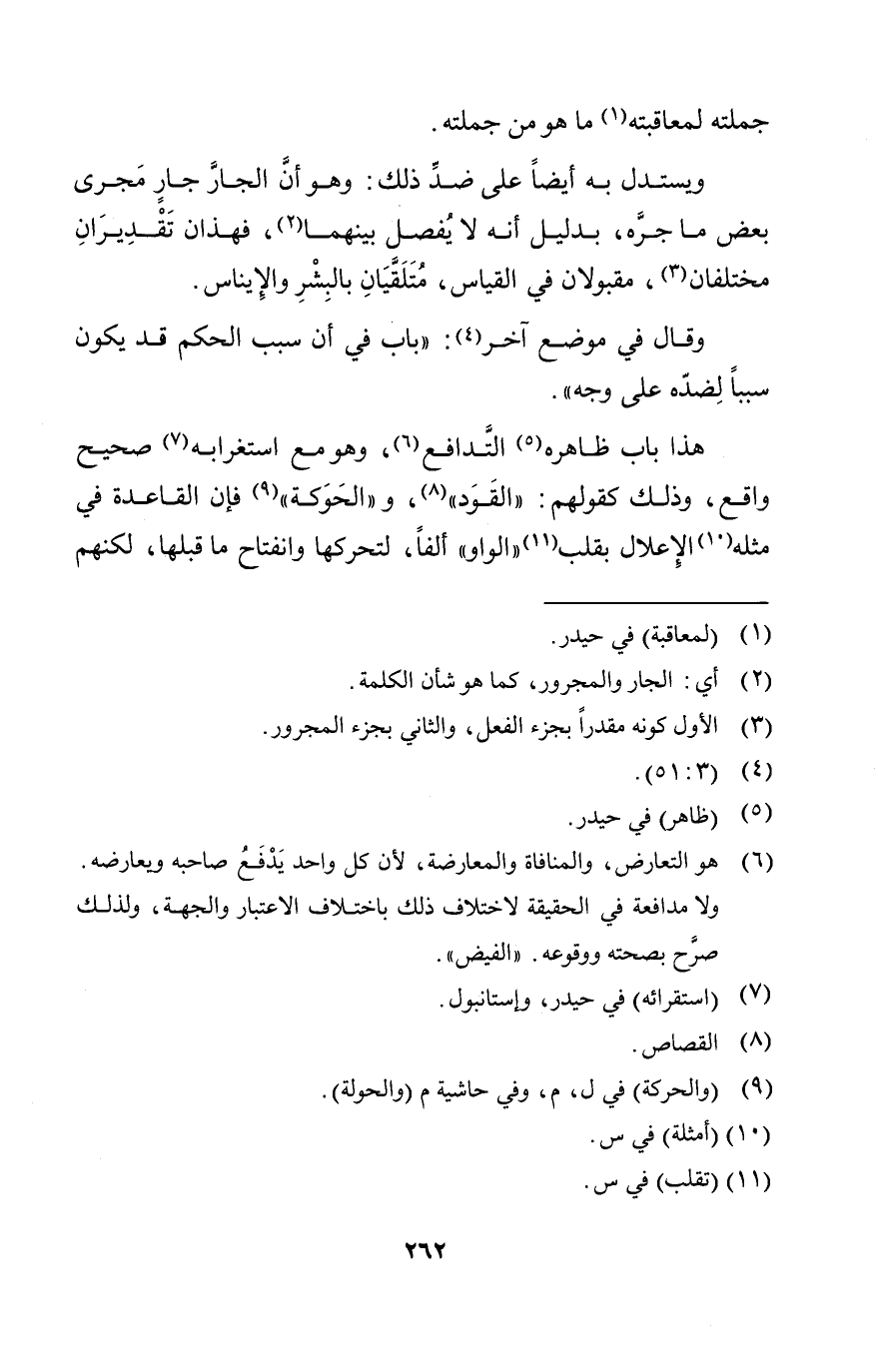 "هذا باب ظاهره التدافع وهو مع استغرابه صحيح واقع وذلك كقولهم القود والحوكة فإن القاعدة في مثله الإعلال بقلب الواو ألفا لتحركها وانفتاح ما قبلها لكنهم