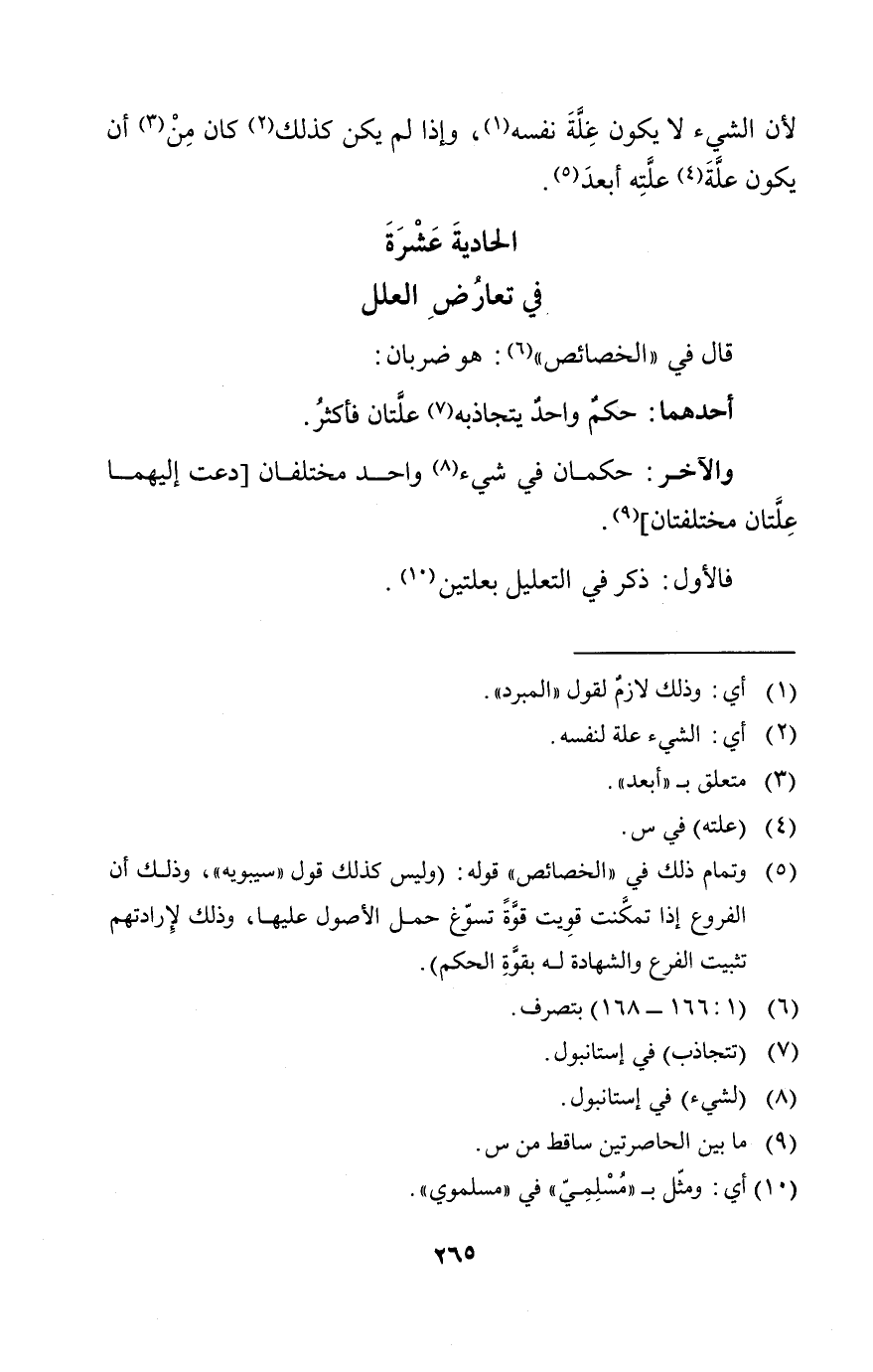 لأن الشيء لا يكون علة على نفسه وإذا لم يكن كذلك كان من أن يكون علة علته أبعد "