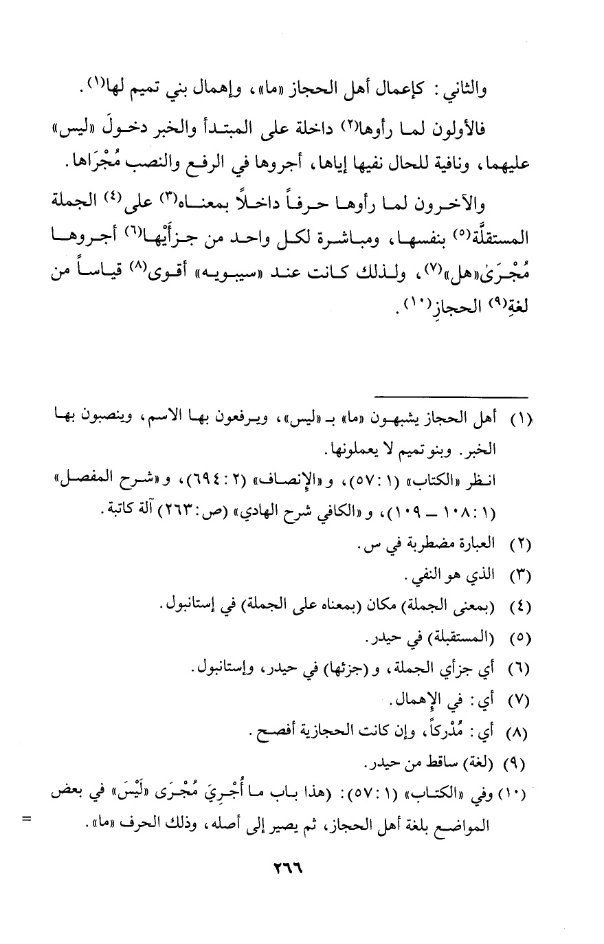 والثاني كإعمال أهل الحجاز (ما) وإهمال بني تميم لها