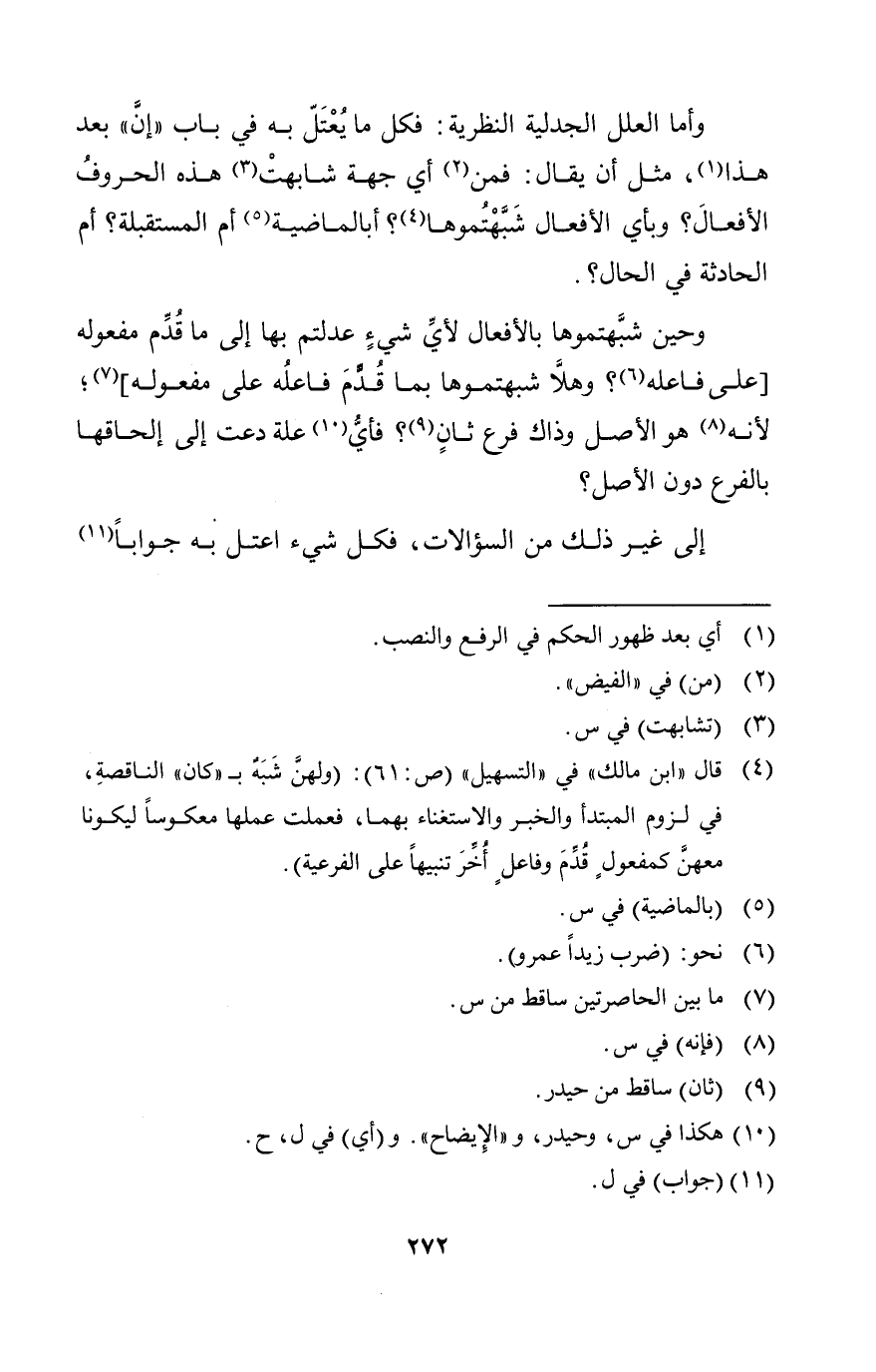 وأما العلل الجدلية النظرية فكل ما يعتل به في باب إن بعد هذا مثل أن يقال: