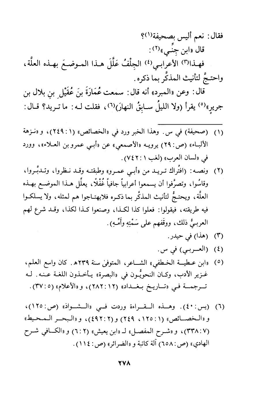 " فهذا الأعرابي الجلف علل هذا الموضع بهذه العلة واحتج لتأنيث المذكر بما ذكره ".