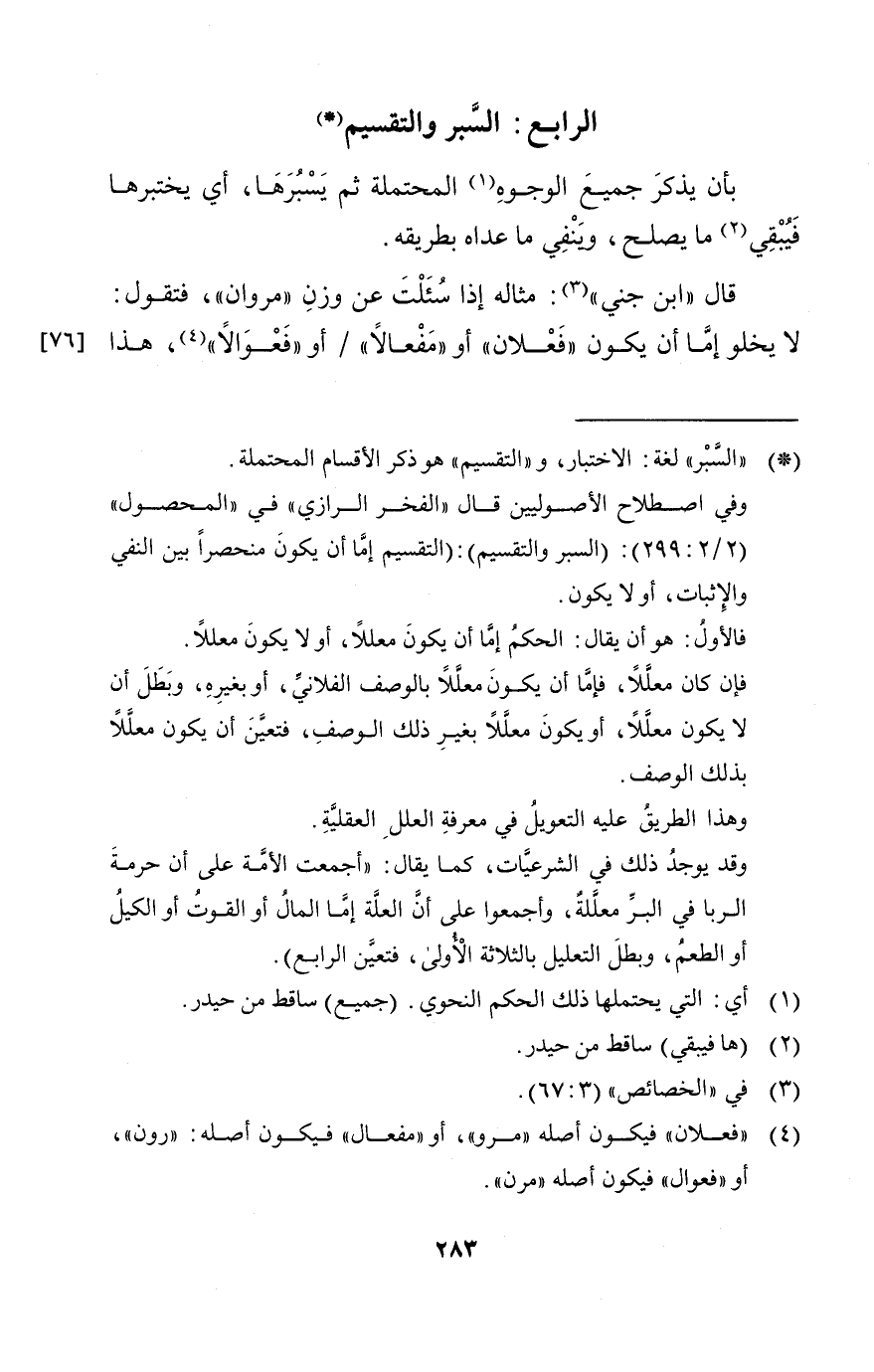 بأن يذكر جميع الوجوه المحتملة ثم يسبرها أي يختبرها فيبقى ما يصلح وينفي ما عداه بطريقه قال ابن جني: