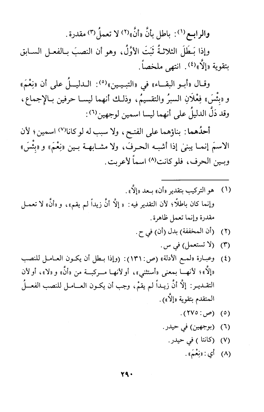 " الدليل على على أن نعم وبئس فعلان السبر والتقسيم وذلك أنهما ليسا حرفين بالإجماع وقد دل الدليل على أنهما ليسا اسمين لوجهين