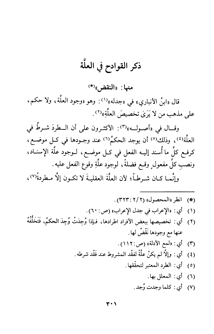 الأكثرون على أن الطرد شرط في العلة، وذلك أن يوجد الحكم عند وجودها في كل موضع، كرفع كل ما أسند إليه الفعل في كل موضع؛ لوجود علة الإسناد، ونصب كل مفعول وقع فضلةً؛ لوجود علة وقوع الفعل عليه، وجر كل ما دخل عليه حرف الجر، لوجود عامله، وكذلك وجود الجزم في كل ما دخل عليه حرف الجزم؛ لوجود عامله.