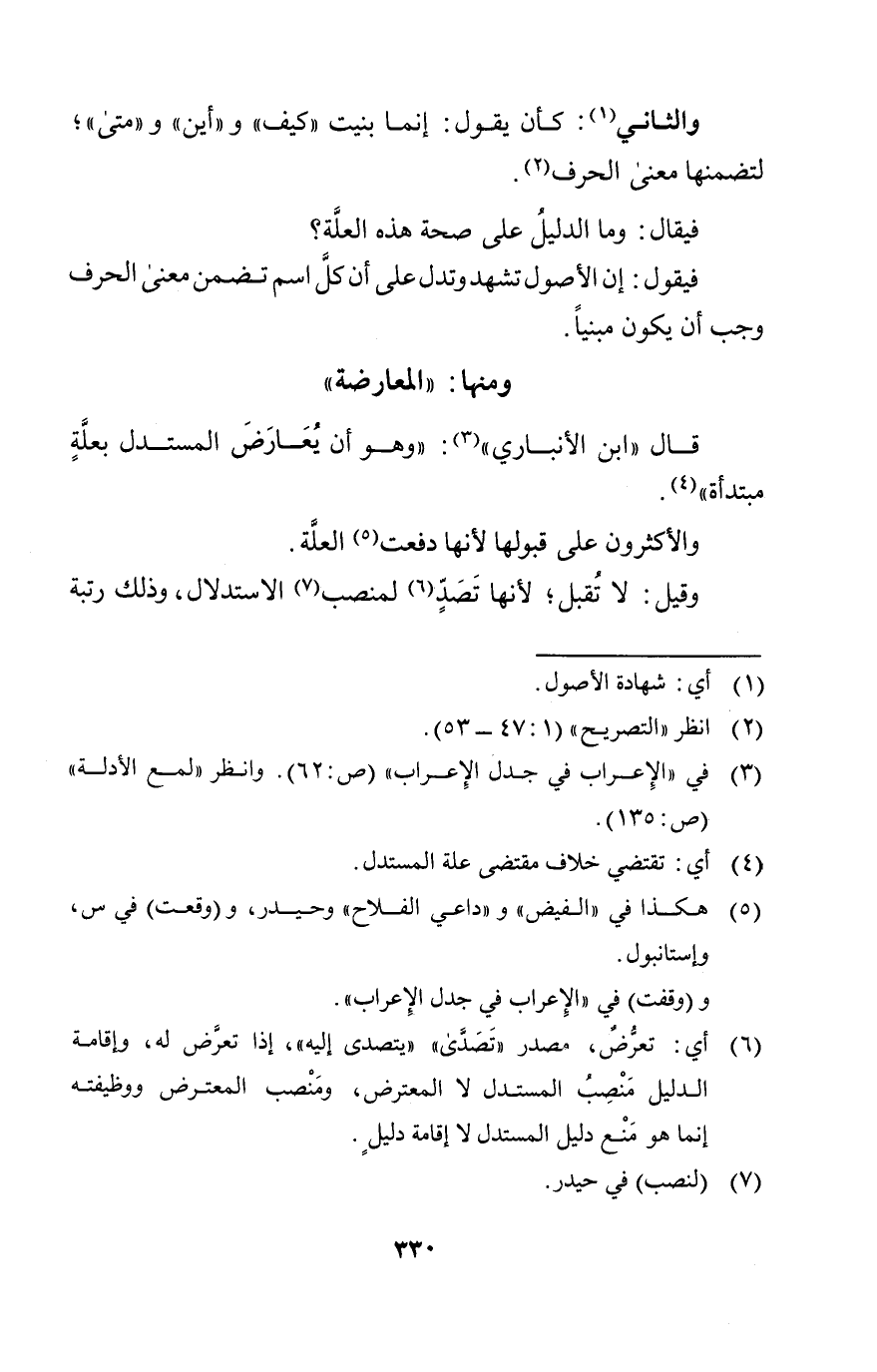 والثاني: كأن يقول: إنما بنيت (كيف) و (أين) و (متى) لتضمنها معنى الحرف
