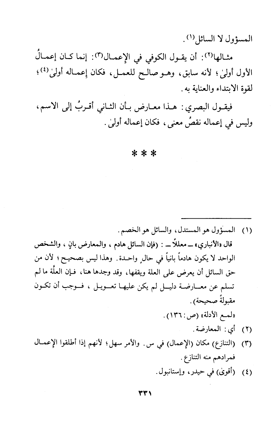 مثلها ان يقول في الإعمال: إنما كان إعما لالول أولى لأنه سابق وهو ثالح للعمل فكان إعماله أولى لقوة الابتداء والعناية به.