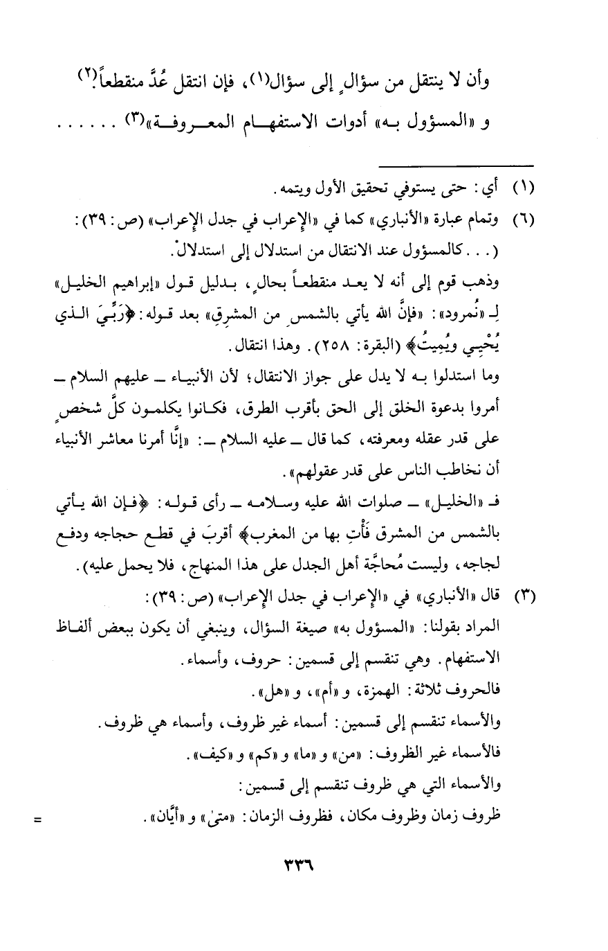 وأن لا ينتقل من سؤال إلى سؤال فإن انتقل عد منقطعا.