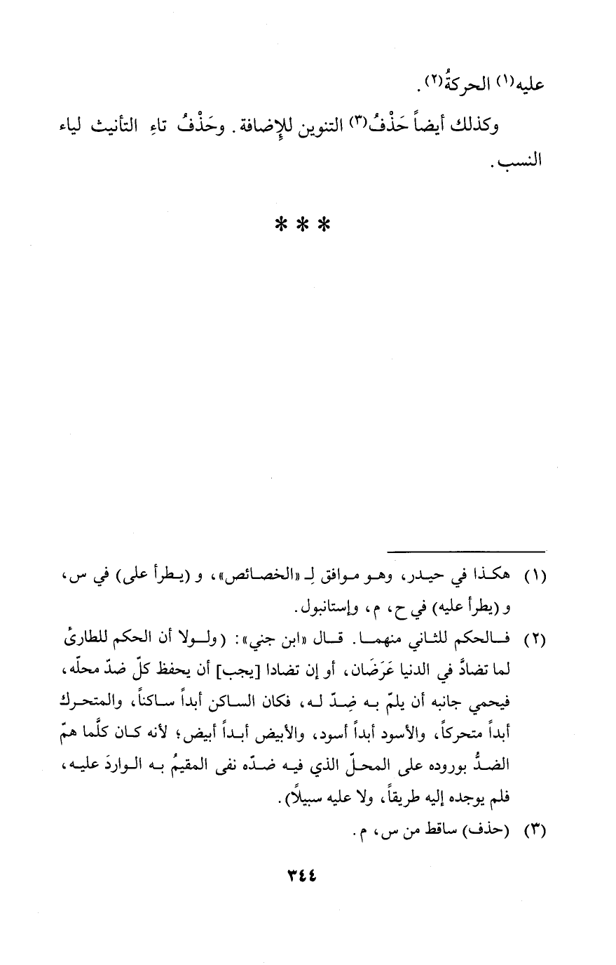 وكذلك أيضا حذف التنوين للإضافة وحذف تاء التأنيث لياء النسب.
