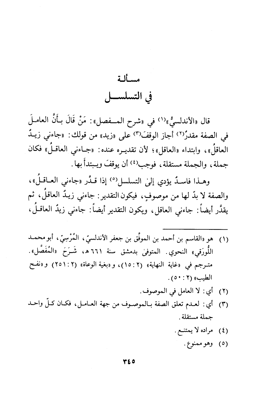 وهذا فاسد يؤدي إلى التسلسل إذا قدر: جاءني العاقل والصفة لابد لها من موصوف فيكون التقدير: جاءني زيد العاقل ثم يقدر أيضا: جاءني العاقل ويكون التقدير أيضا: جاءني زيد العاقل
