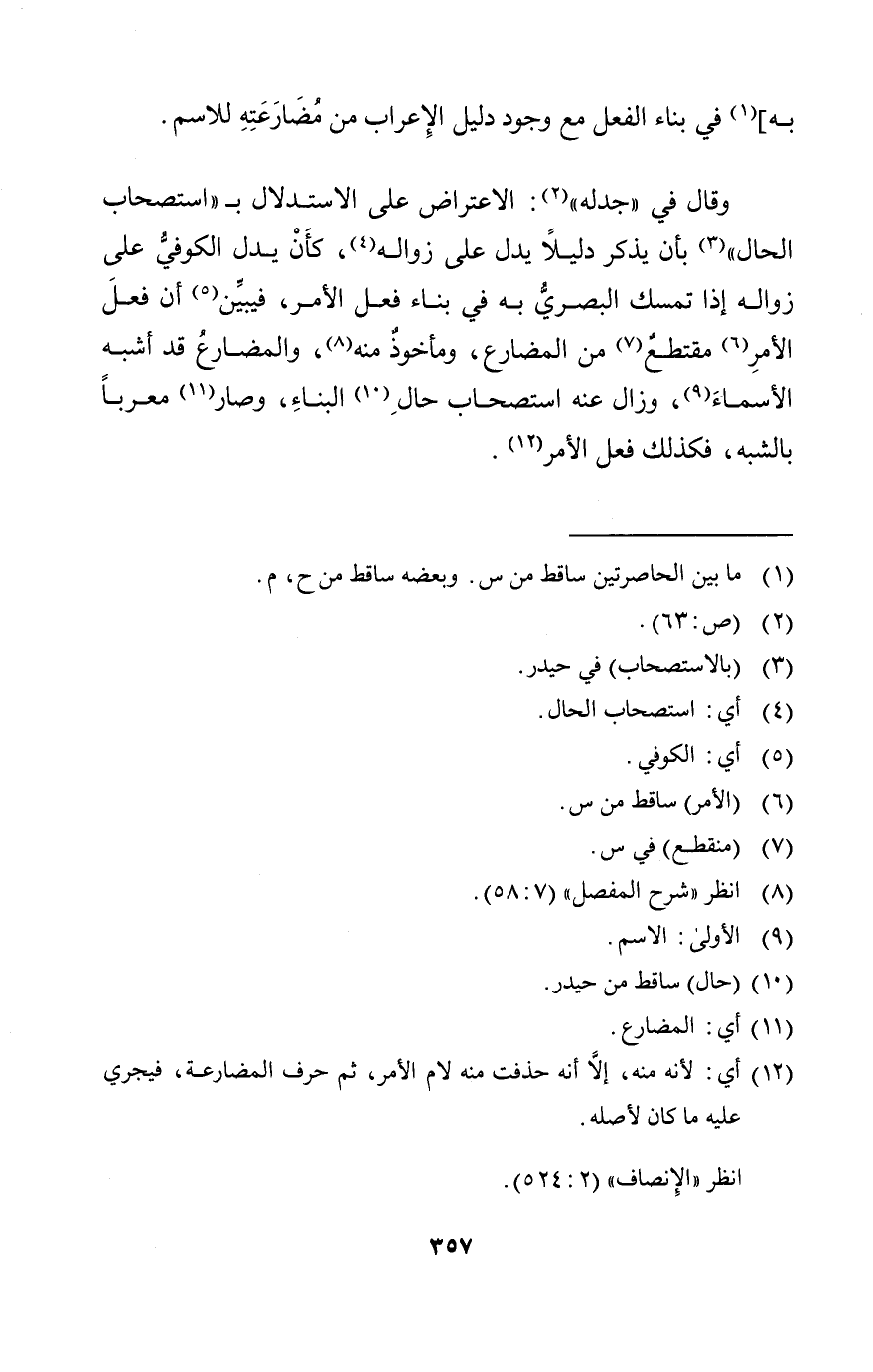 " الاعتراض على الاستدلال باستصحاب الحال بأن يذكر دليلا على زواله كأن يدل الكوفي على زواله إذا تمسك البصري به في بناء فعل الأمر فيبين أن فهل الأمر مقتطع من المضارع ومأخوذ منه والمضارع قد أشبه الأسماء وزال عنه استصحاب حال البناء وصار معربا بالشبه فكذلك فعل الأمر