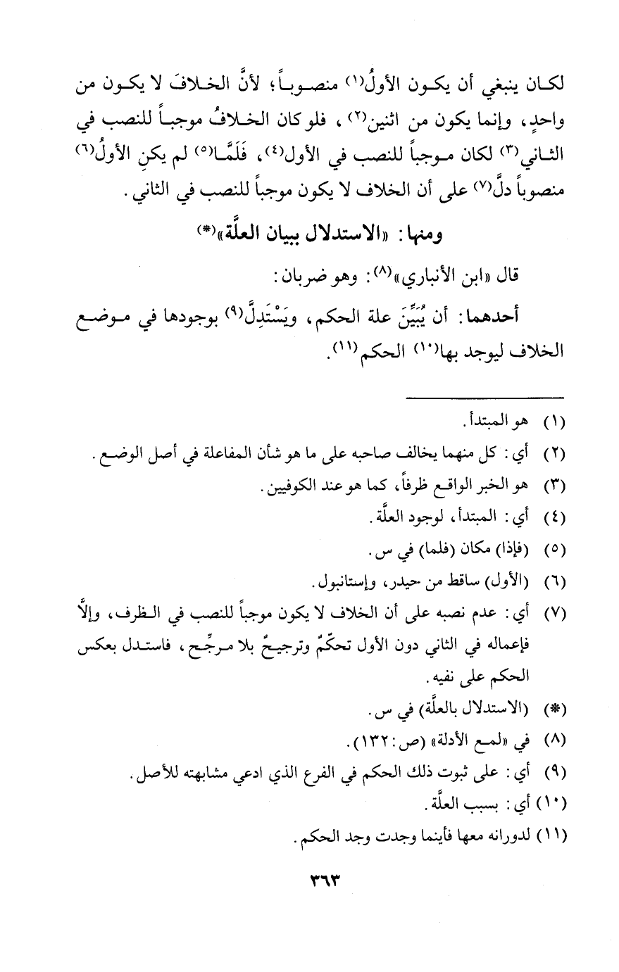 لكان ينبغي أن يكون الأول منصوبا لأن الخلاف لايكون من واحد من اثنين فلو كان الخلاف موجبا للنصب في الثاني لكان موجبا للنصب في الأول فلما لم يكن الأول منصوبا دل على أن الخلاف لا يكون موجبا للنصب في الثاني.