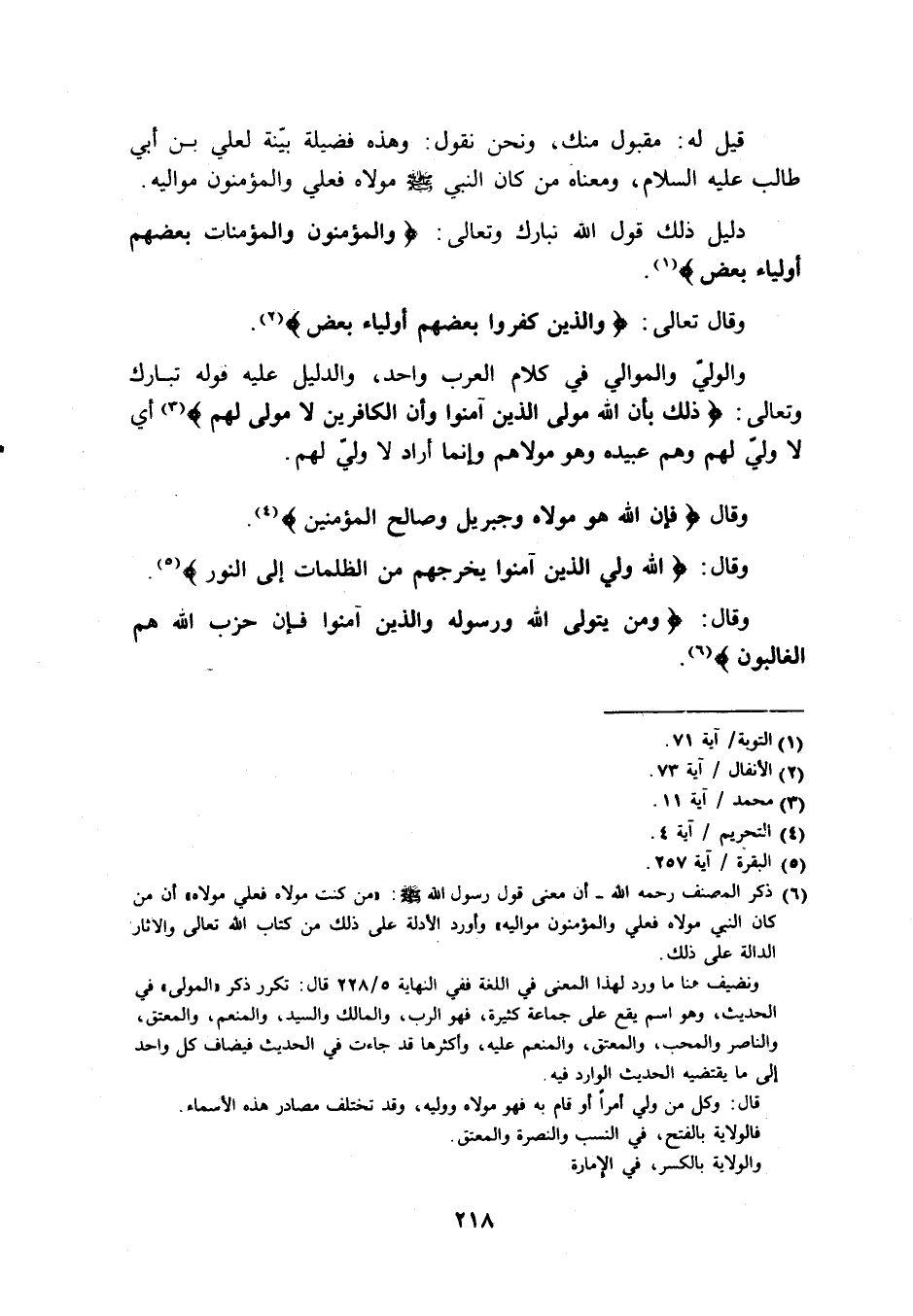 قيل لَهُ: مَقْبُول مِنْك، وَنحن نقُول: وَهَذِه فَضِيلَة بَينه لعَلي بن أبي طَالب عَلَيْهِ السَّلَام، وَمَعْنَاهُ من كَانَ النَّبِي - صَلَّى اللَّهُ عَلَيْهِ وَسَلَّم َ - مَوْلَاهُ فعلي وَالْمُؤمنِينَ موَالِيه.