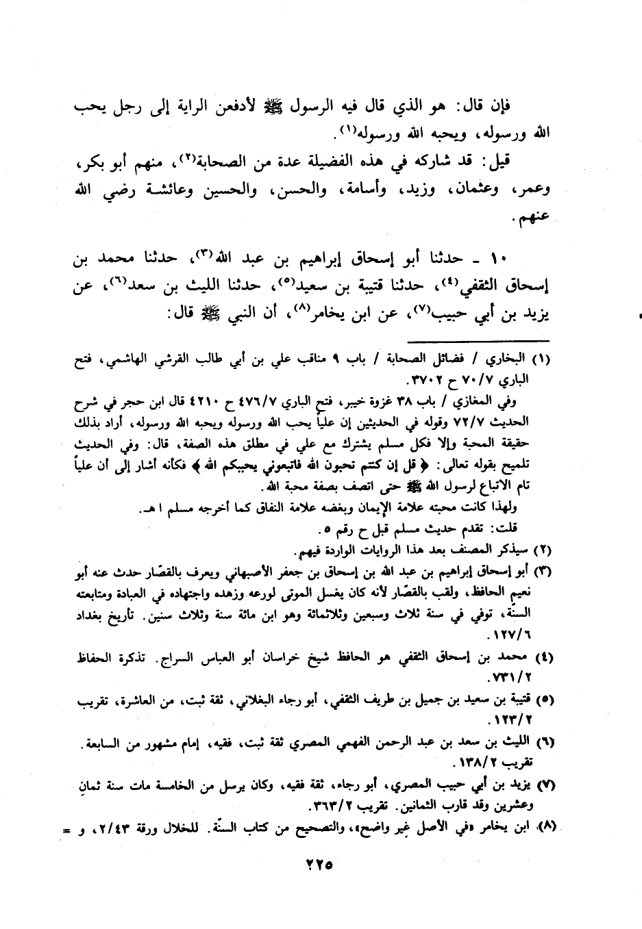 10 - حَدثنَا أَبُو إِسْحَاق إِبْرَاهِيم بن عبد الله، حَدثنَا مُحَمَّد بن إِسْحَاق الثَّقَفِيّ، حَدثنَا قُتَيْبَة بن سعيد، حَدثنَا اللَّيْث بن سعد، عَن يزِيد بن أبي حبيب، عَن ابْن يخَامر، أَن النَّبِي - صَلَّى اللَّهُ عَلَيْهِ وَسَلَّم َ - قَالَ: