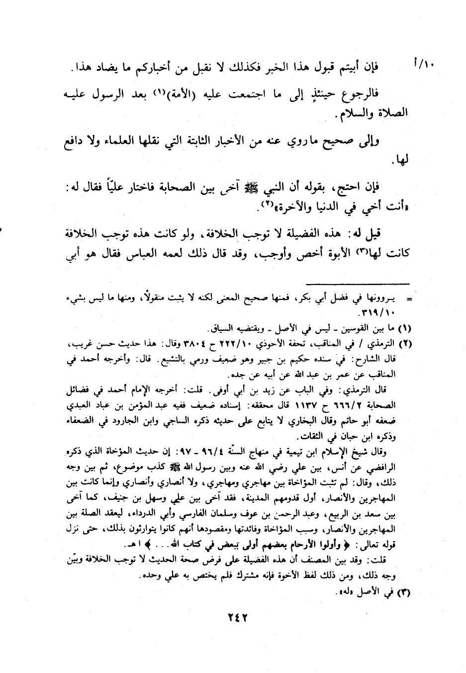 فَإِن احْتج، بقوله أَن النَّبِي - صَلَّى اللَّهُ عَلَيْهِ وَسَلَّم َ - آخى بَين الصَّحَابَة فَاخْتَارَ عليا فَقَالَ لَهُ: " أَنْت أخي فِي الدُّنْيَا وَالْآخِرَة ".
