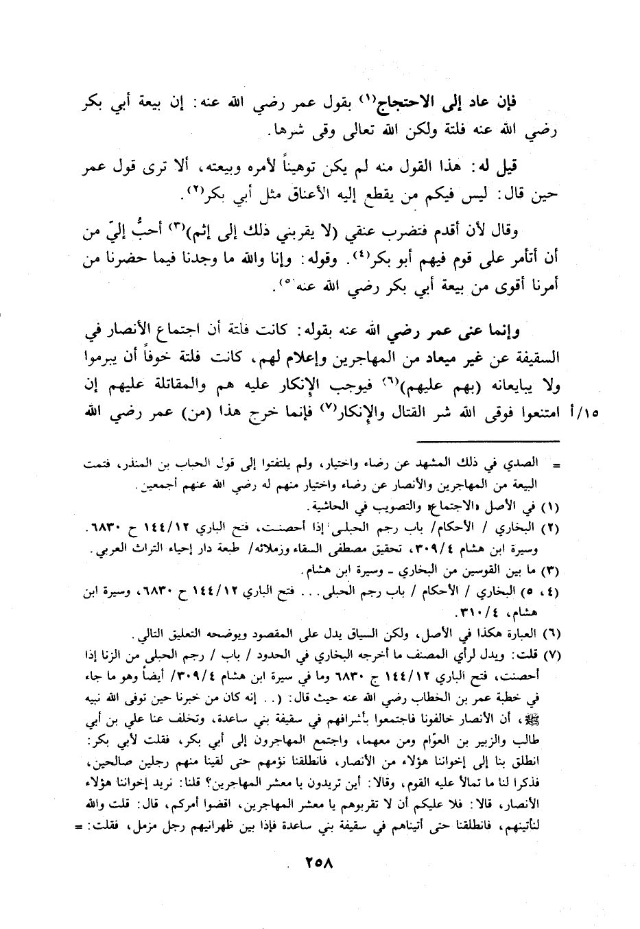 وَإِنَّمَا عَنى عمر رَضِي الله عَنهُ بقوله: كَانَت فلتة أَن اجْتِمَاع الْأَنْصَار فِي السَّقِيفَة عَن غير ميعاد من الْمُهَاجِرين وإعلام لَهُم، كَانَت فلته خوفًا أَن يبرموا وَلَا يبايعانه (بهم عَلَيْهِم) فَيُوجب الْإِنْكَار عَلَيْهِ هم والمقاتلة عَلَيْهِم إِن امْتَنعُوا فوقى الله شَرّ الْقِتَال وَالْإِنْكَار فَإِنَّمَا خرج هَذَا (من) عمر رَضِي الله