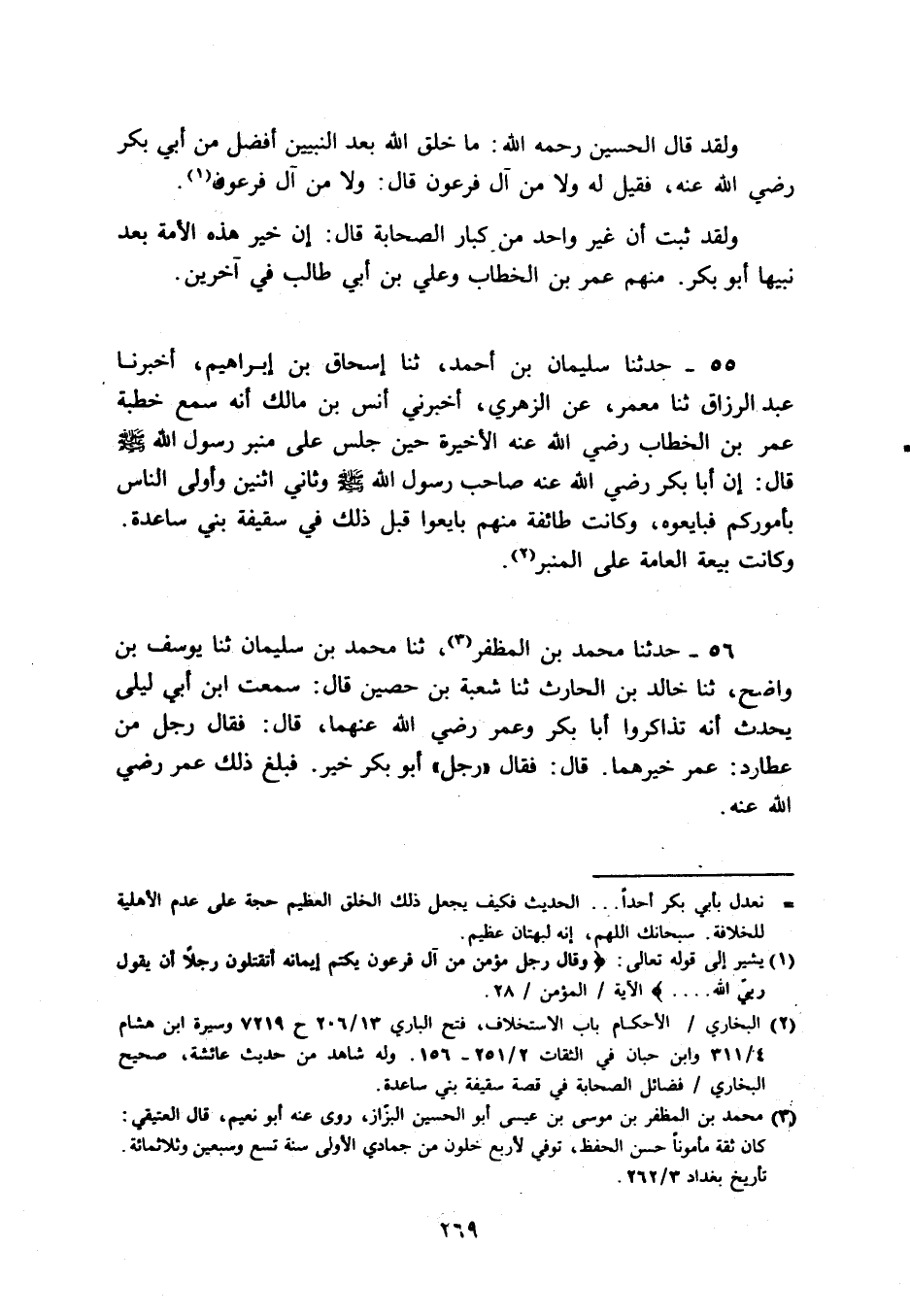 وَلَقَد قَالَ الْحُسَيْن رَحمَه الله: مَا خلق الله بعد النَّبِيين أفضل من أبي بكر رَضِي الله عَنهُ، فَقيل لَهُ وَلَا من آل فِرْعَوْن قَالَ: وَلَا من آل فِرْعَوْن.