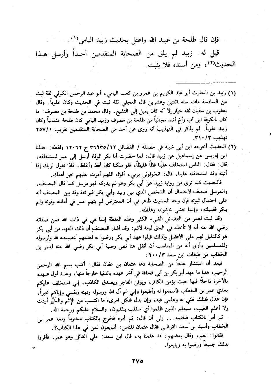 فَإِن قَالَ طَلْحَة بن عبيد الله واعتل بِحَدِيث زبيد اليامي.