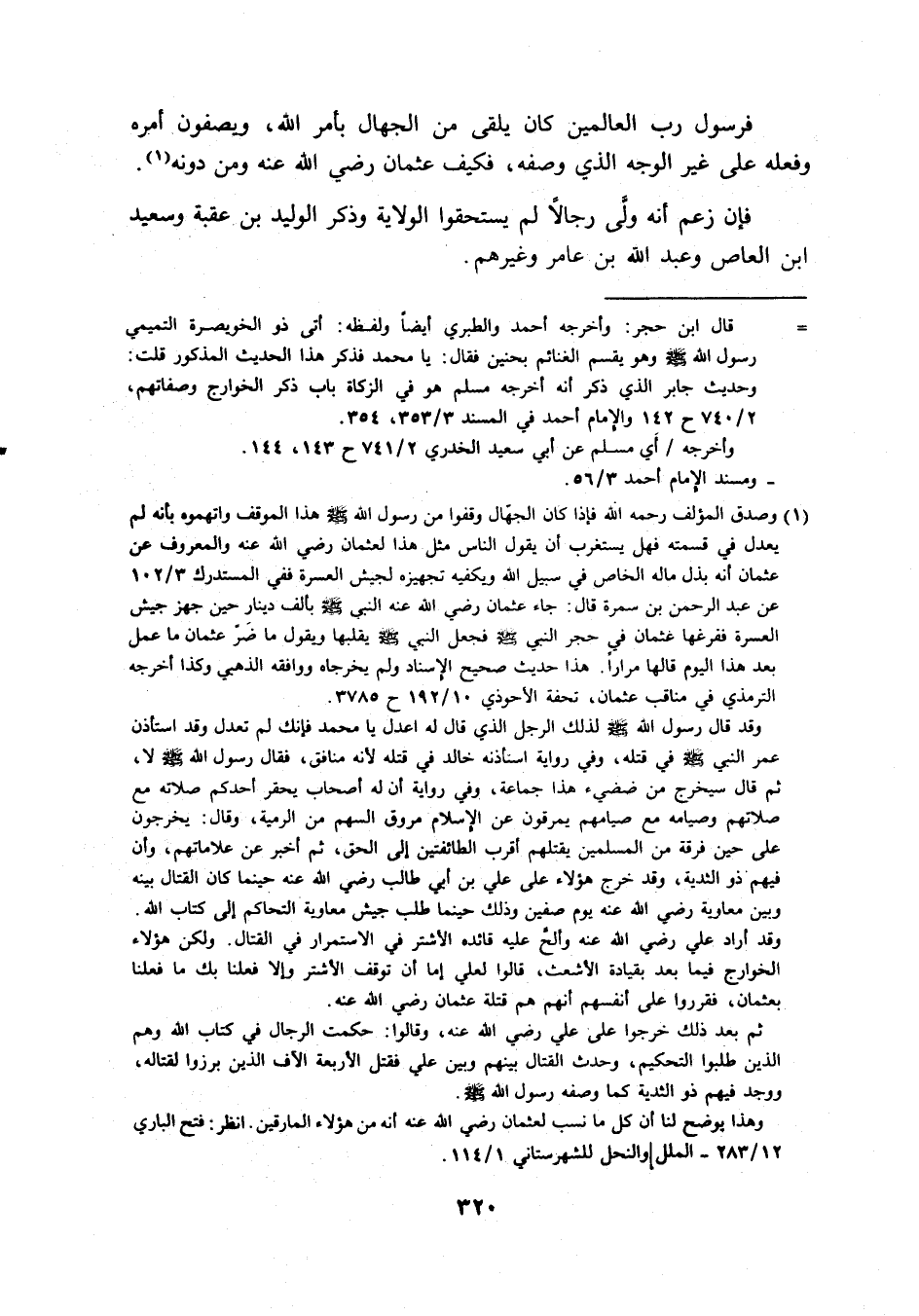 فَرَسُول رب الْعَالمين كَانَ يلقى من الْجُهَّال بِأَمْر الله، ويصفون أمره وَفعله على غير الْوَجْه الَّذِي وَصفه، فَكيف عُثْمَان رَضِي الله عَنهُ وَمن دونه.