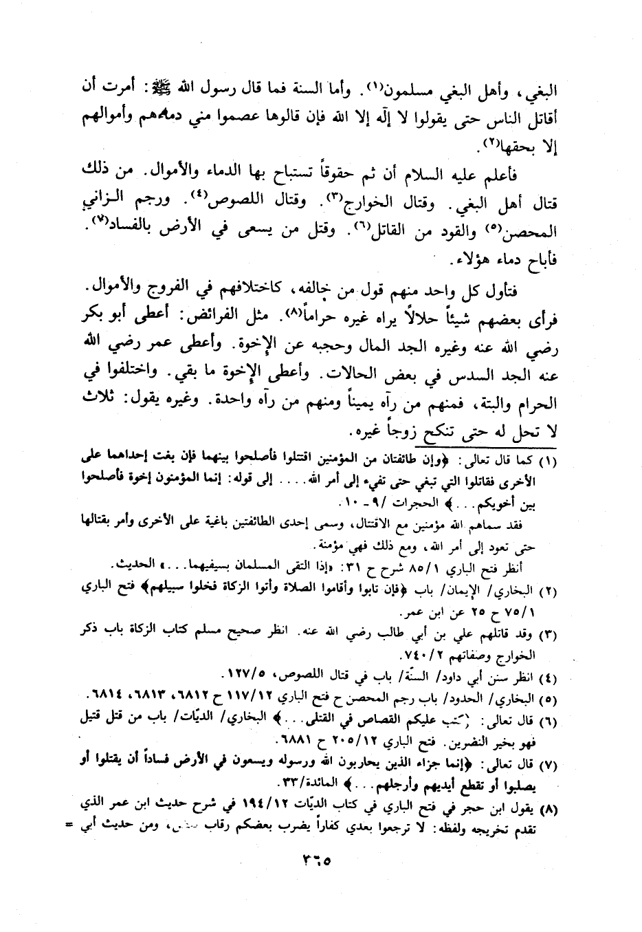 الْبَغي، وَأهل الْبَغي مُسلمُونَ. وَأما السّنة فَمَا قَالَ رَسُول الله - صَلَّى اللَّهُ عَلَيْهِ وَسَلَّم َ -: أمرت أَن أقَاتل النَّاس حَتَّى يَقُولُوا لَا إِلَه إِلَّا الله فَإِن قالوها عصموا مني دِمَاءَهُمْ وَأَمْوَالهمْ إِلَّا بِحَقِّهَا.