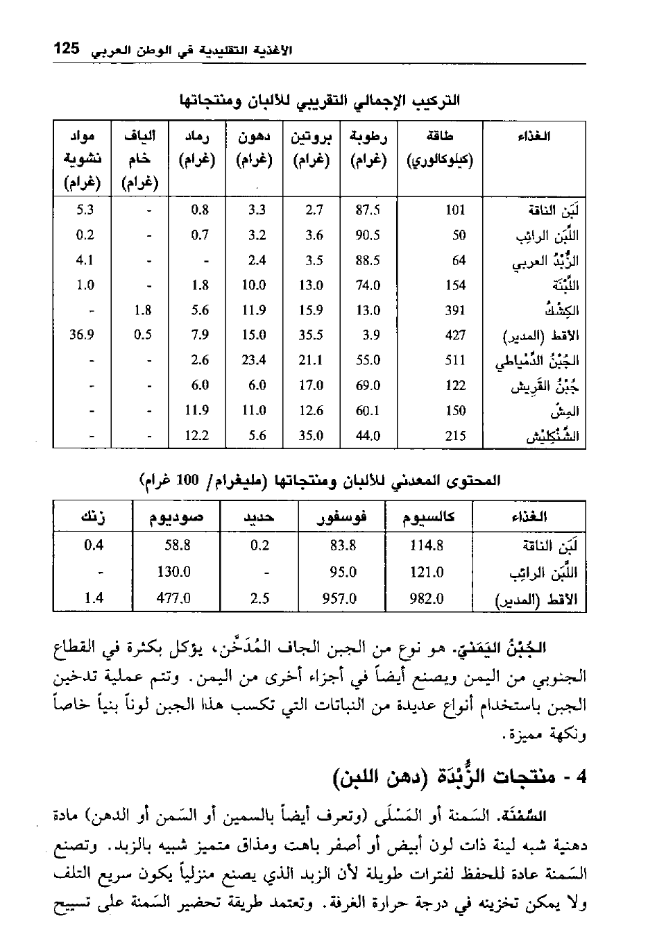 المحتوى المعدني للألبان ومنتجاتها "مليغرام/ 100 غرام"