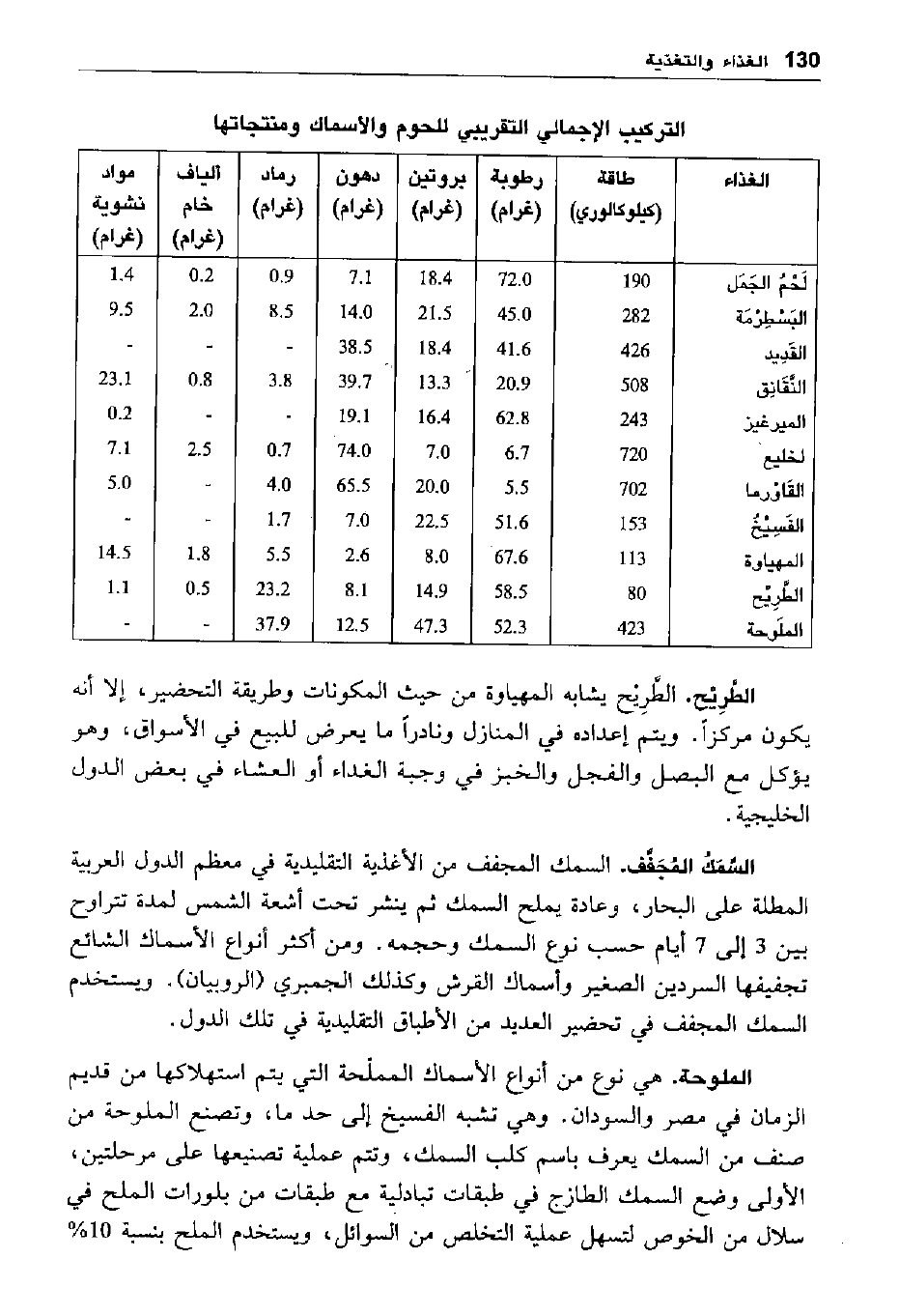 التركيب الإجمالي التقريبي للحوم والأسماك ومنتجاتها