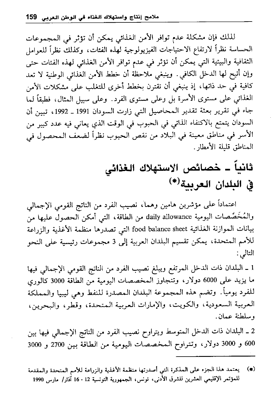 "*" يعتمد هذا الجزء على المذكرة التي أصدرتها منظمة الأغذية والزراعة للأمم المتحدة والمقدمة للمؤتمر الإقليمي العشرين للشرق الأدنى، تونس، الجمهورية التونسية 16-12 آذار/ مارس 1990.