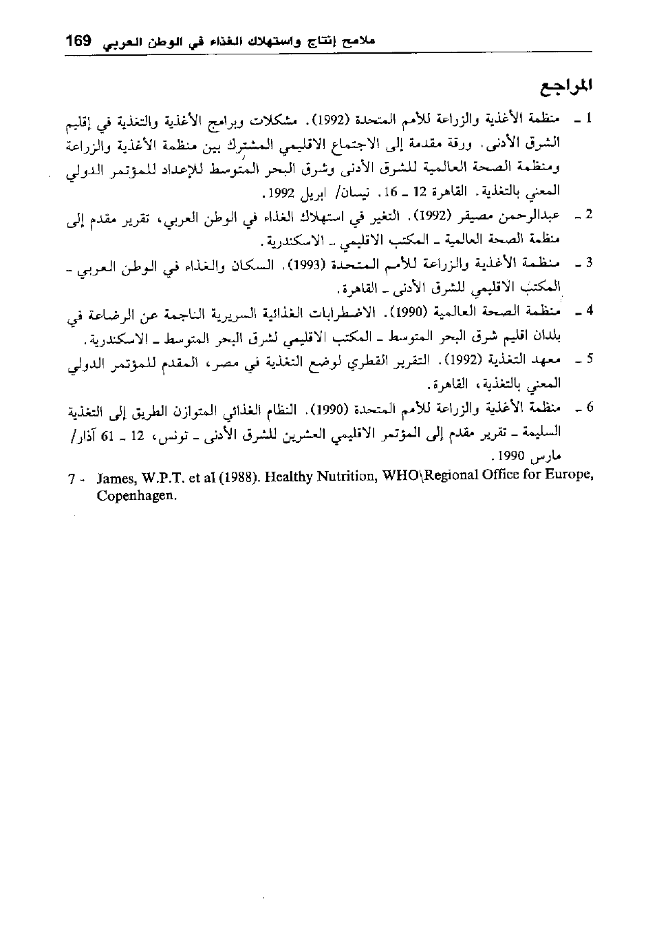 2- عبد الرحمن مصيقر "1992". التغير في استهلاك الغذاء في الوطن العربي، تقرير مقدم إلى منظمة الصحة العالمية-المكتب الإقليمي-الإسكندرية.