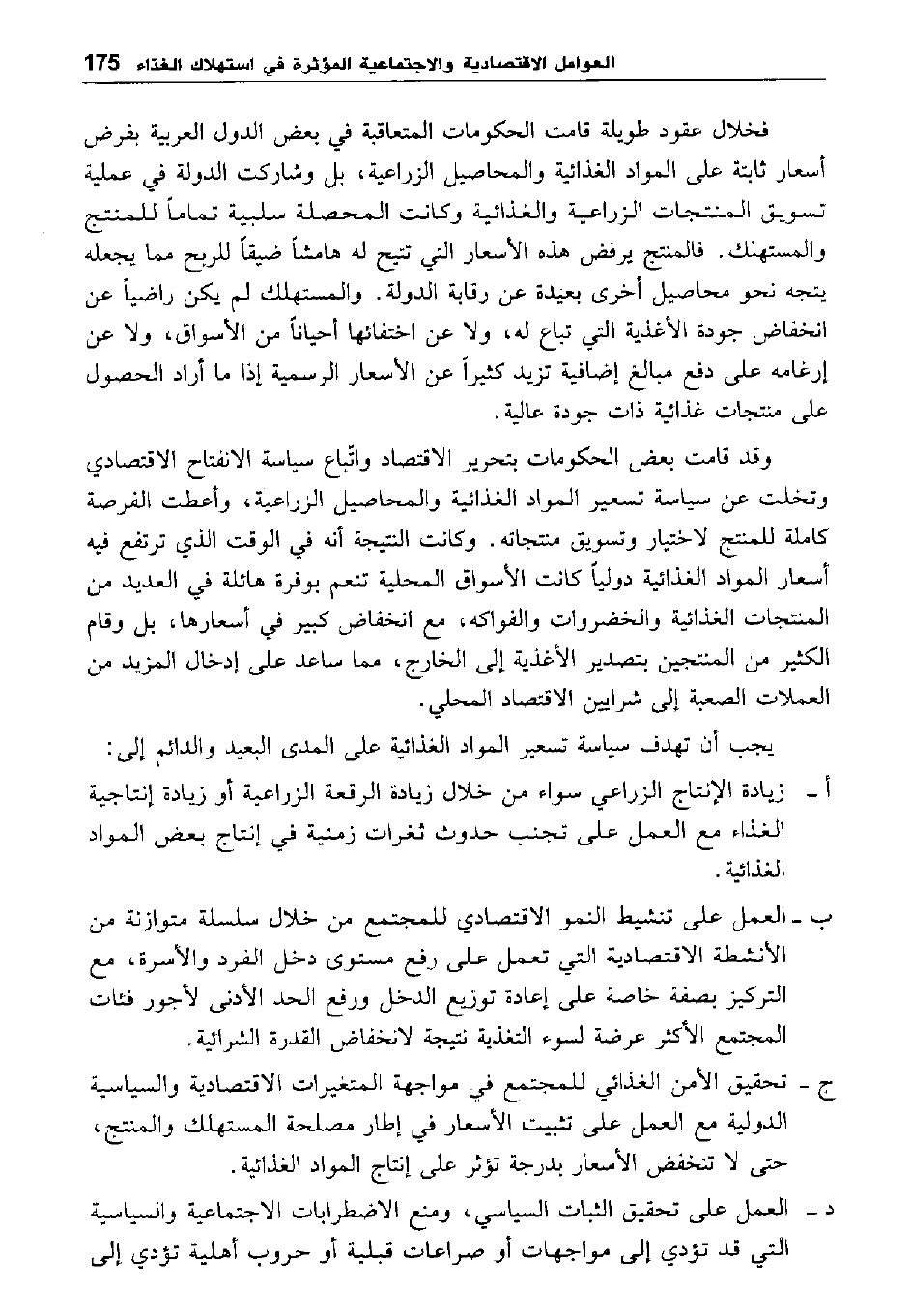 د- العمل على تحقيق الثبات السياسي، ومنع الاضطرابات الاجتماعية والسياسية التي قد تؤدي إلى مواجهات أو صراعات قبلية أو حروب أهلية تؤدي إلى انخفاض إنتاج الغذاء بشكل كبير.