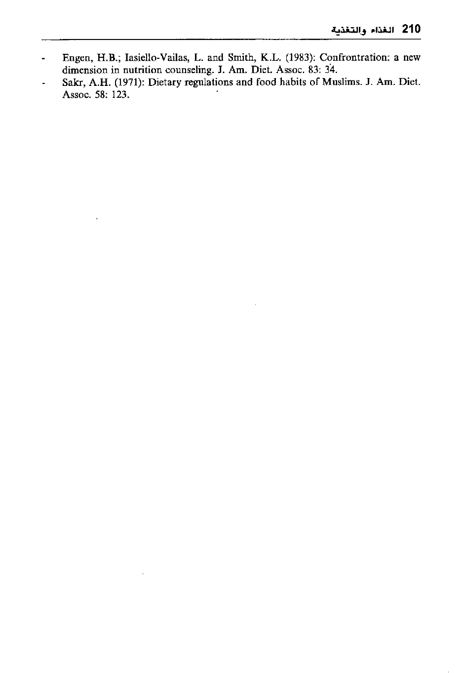 * Sakr, A. H. (1971) : Dietary regulations and food habits of Muslims. J. Am. Diet Assoc. 58: 123.
