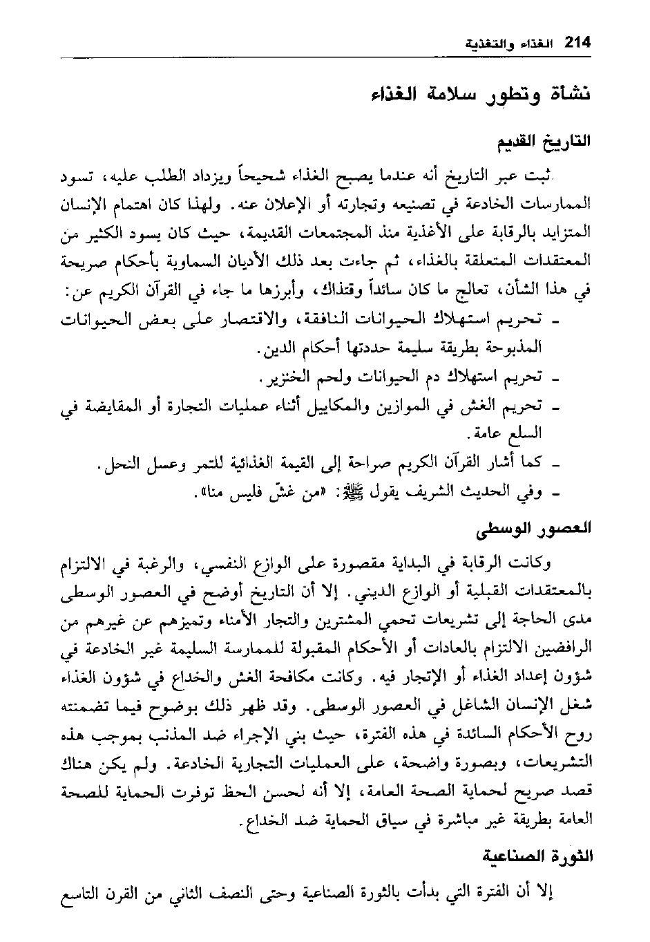 ثبت عبر التاريخ أنه عندما يصبح الغذاء شحيحا ويزداد الطلب عليه، تسود الممارسات الخادعة في تصنيعه وتجارته أو الإعلان عنه. ولهذا كان اهتمام الإنسان المتزايد بالرقابة على الأغذية منذ المجتمعات القديمة، حيث كان يسود الكثير من المعتقدات المتعلقة بالغذاء، ثم جاءت بعد ذلك الأديان السماوية بأحكام صريحة في هذا الشأن، تعالج ما كان سائدا وقتذاك، وأبرزها ما جاء في القرآن الكريم عن:
