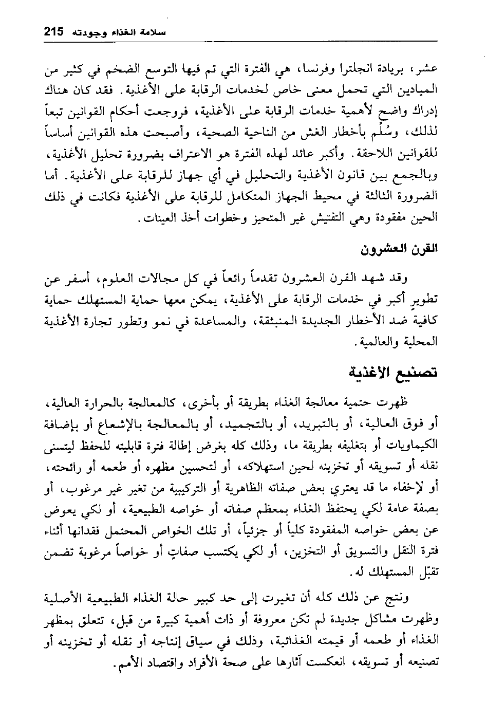 وقد شهد القرن العشرون تقدما رائعا في كل مجالات العلوم، أسفر عن تطوير أكبر في خدمات الرقابة على الأغذية، يمكن معها حماية المستهلك حماية كافية ضد الأخطار الجديدة المنبثقة، والمساعدة في نمو وتطور تجارة الأغذية المحلية والعالمية.
