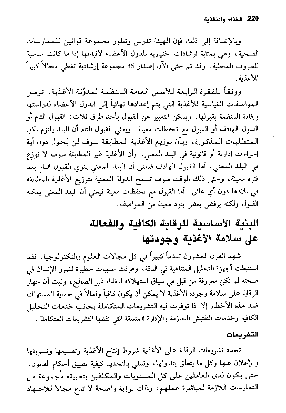 البنية الأساسية للرقابة الكافية والفعالة على سلامة الأغذية وجودتها: