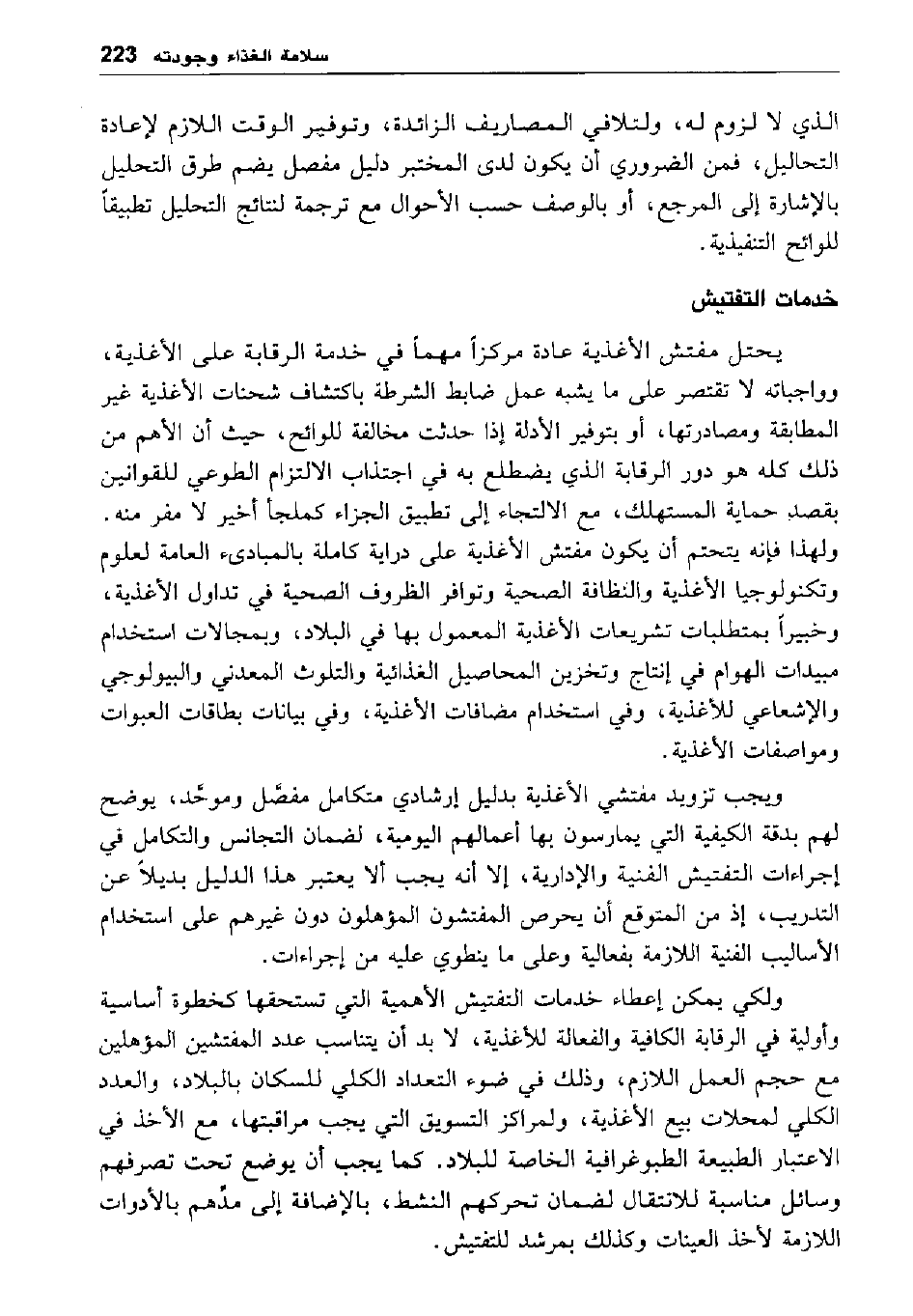 المخالفات المشتبه في وقوعها إلا عن طريق المختبرات. وفي حالات كثيرة يكون التحليل في المختبرات ضروريا لكي يتسنى اتخاذ القرار السليم، فيما يتعلق بصلاحية المواد الغذائية أو استساغتها أو مطابقتها للتركيب المنصوص عليه بالقوانين أو المعلن على بطاقاتها.