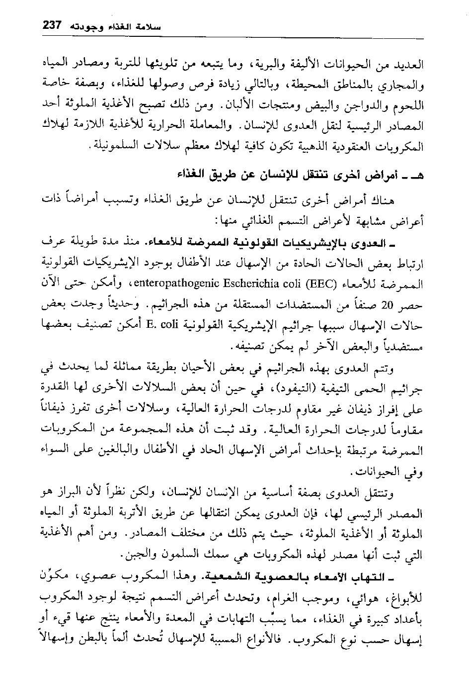 هـ- أمراض أخرى تنتقل للإنسان عن طريق الغذاء: