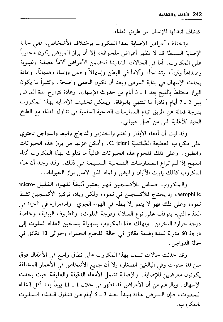 وقد ثبت أن أمعاء الأبقار والغنم والخنازير والدجاج والبط والدواجن تحتوي على مكروب العطيفة الصائمية C.Jejuni، وأمكن عزلها من براز هذه الحيوانات والطيور. وعلى ذلك فلحوم هذه الحيوانات غالبا ما تتلوث بهذا المكروب أثناء الذبح إذا لم تراع الممارسات الصحية السليمة في ذلك. وقد وجد أن هذا المكروب كذلك يلوث الألبان والبيض والماء الذي لامس براز الحيوانات.