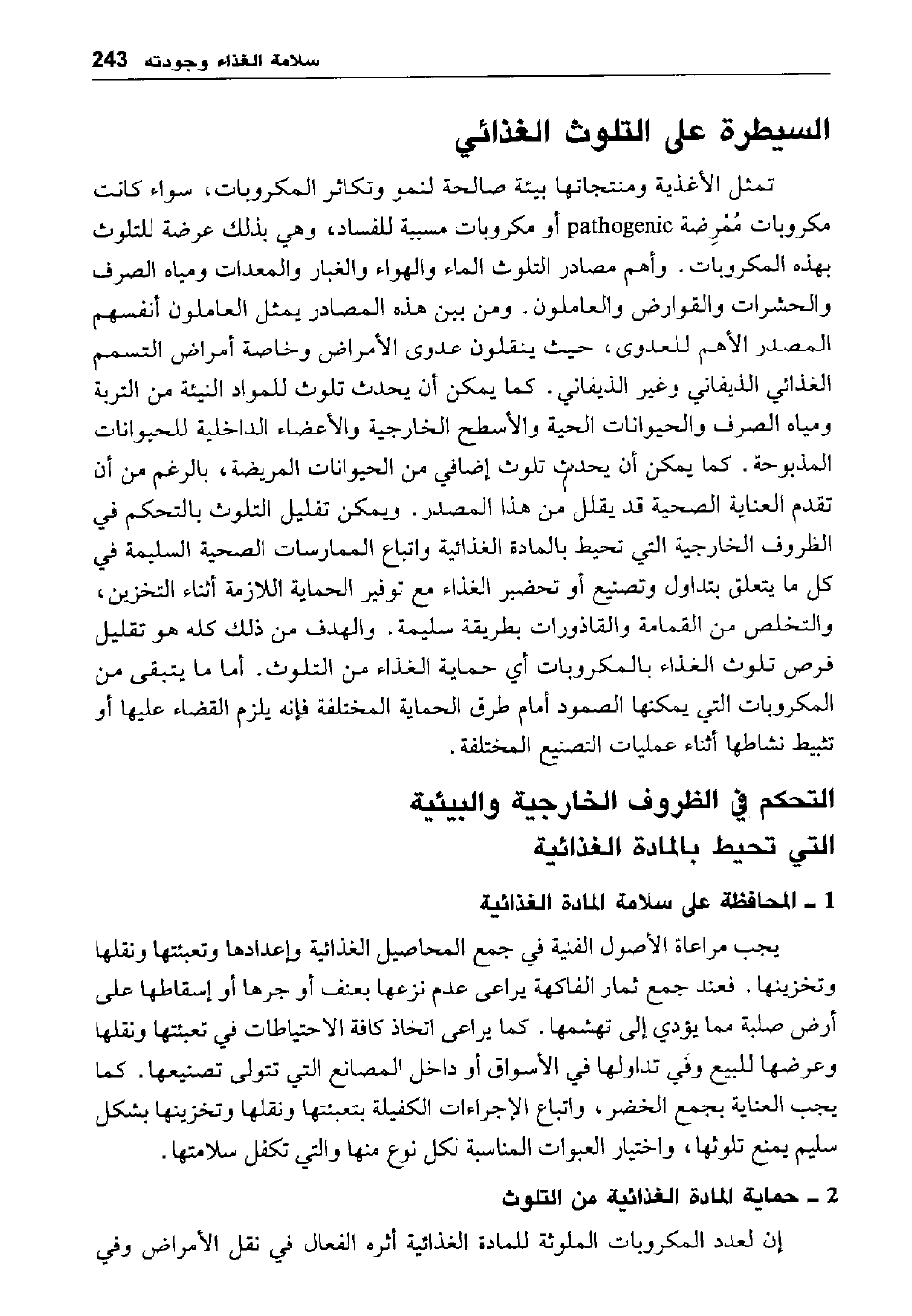 السيطرة على التلوث الغذائي: